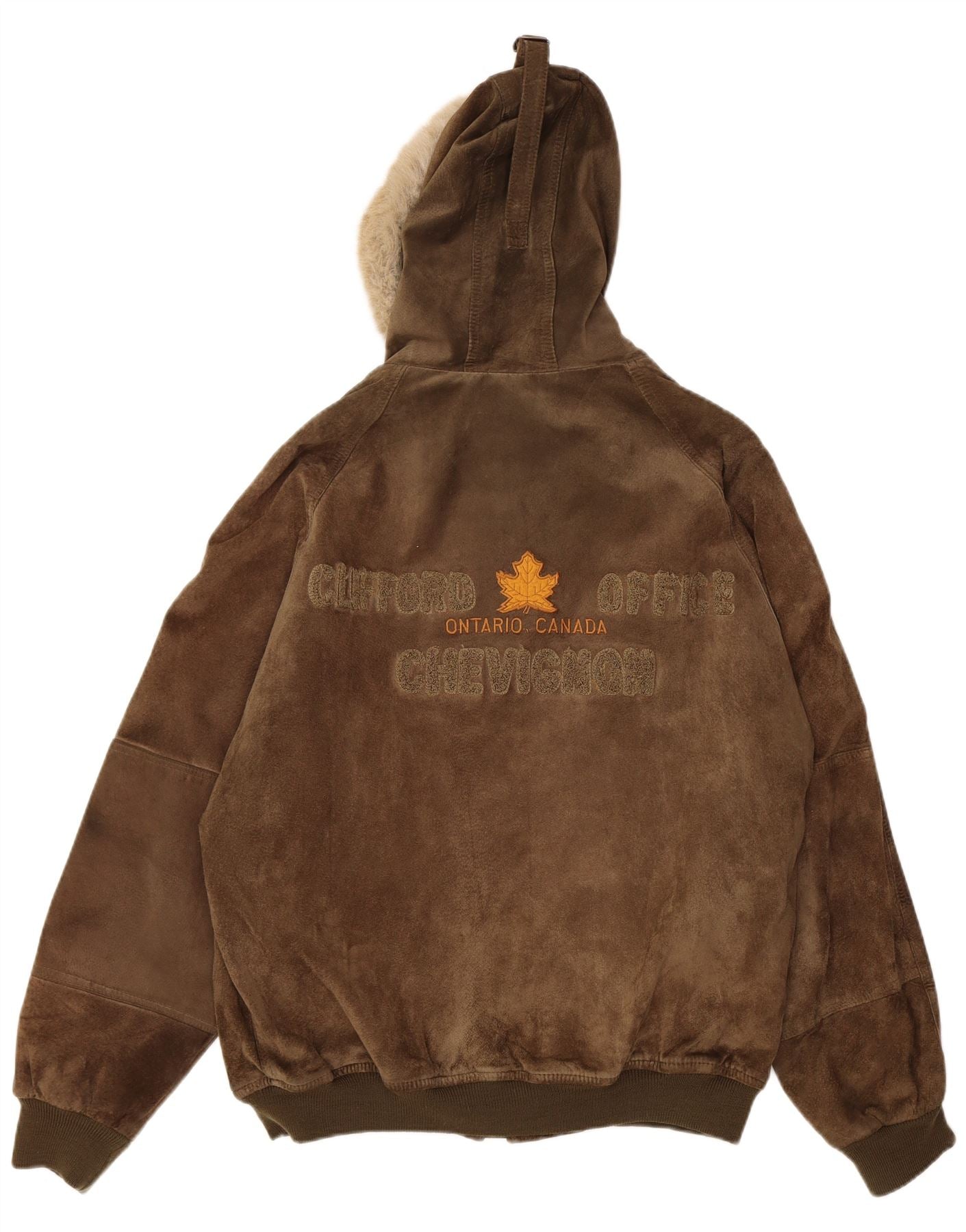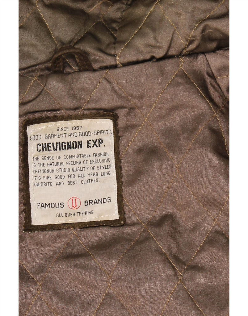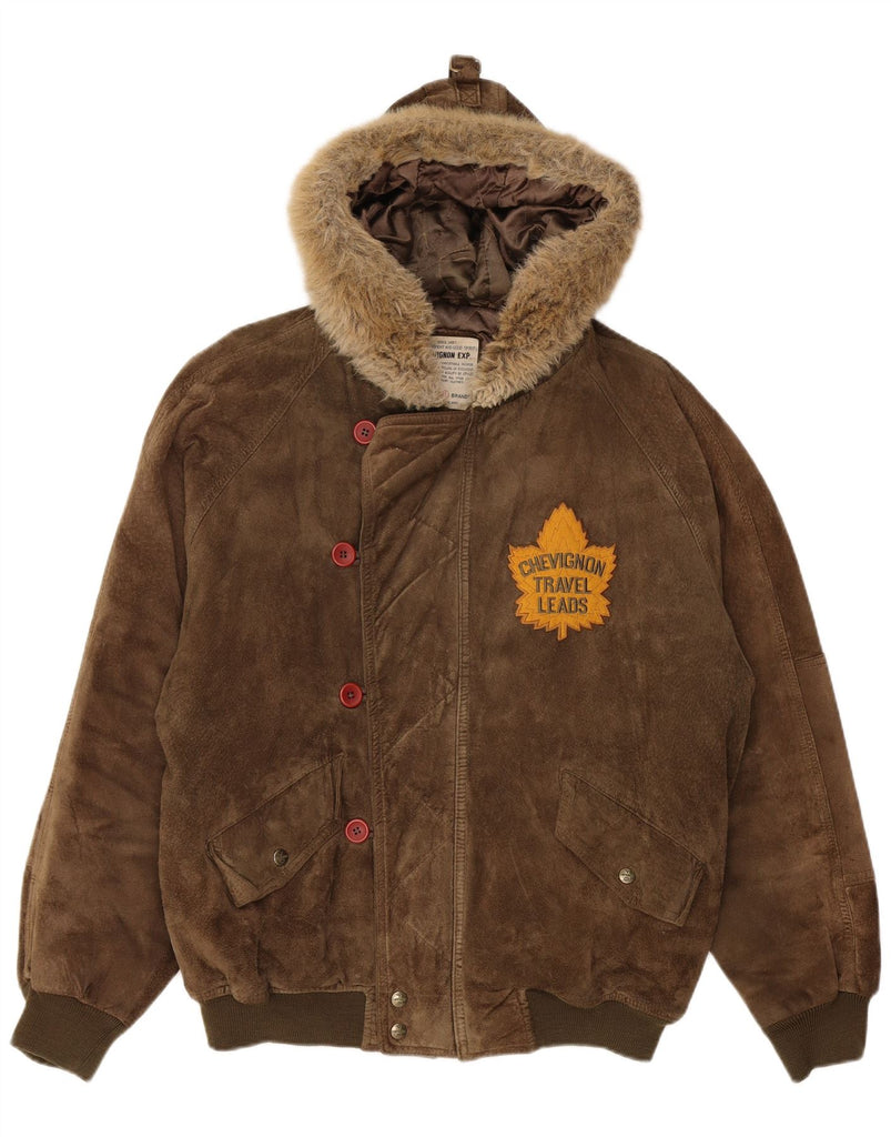 CHEVIGNON Mens Hooded Suede Bomber Jacket UK 40 Large Brown Leather