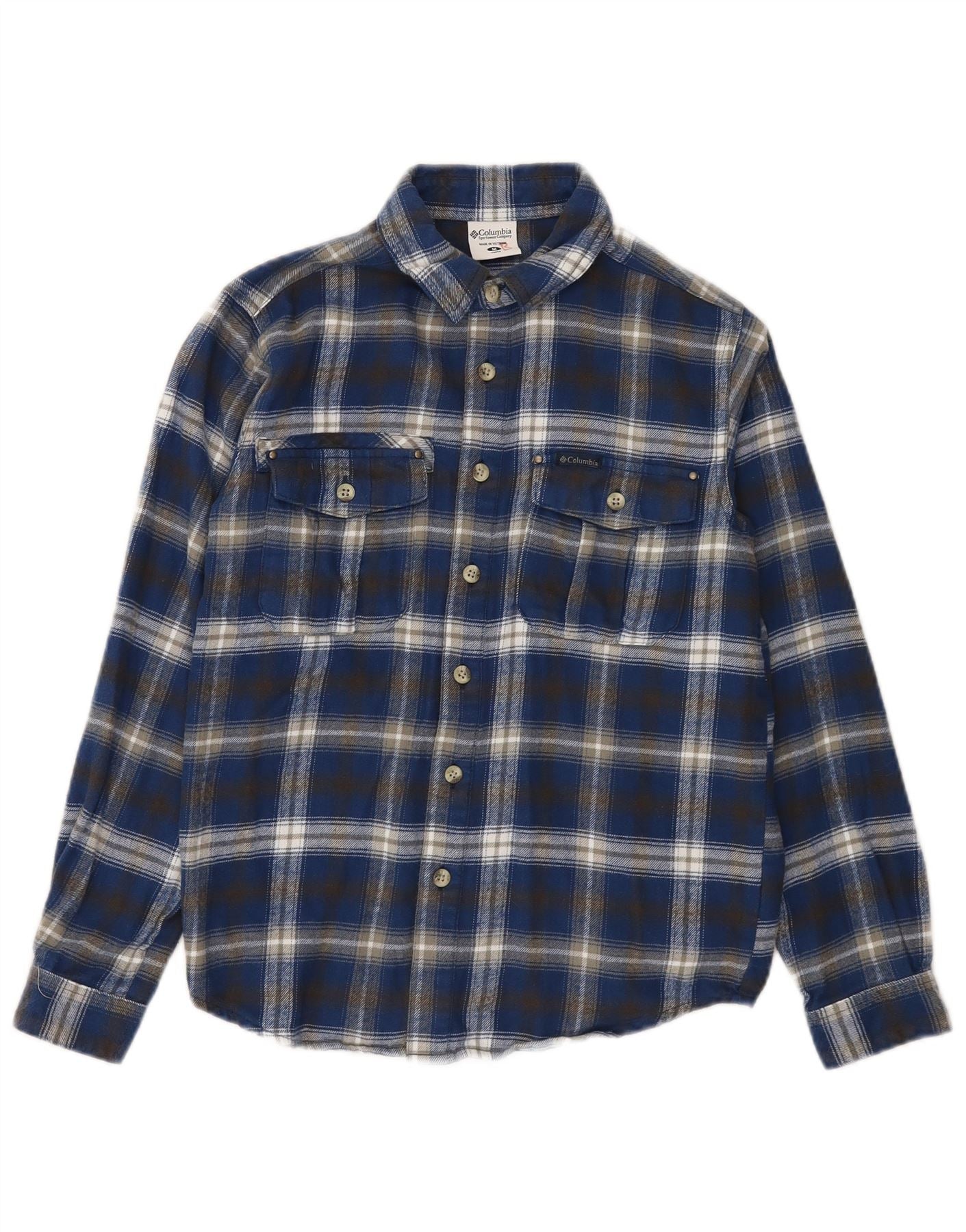 - AI Description: This Columbia boys' flannel shirt is crafted from soft 100 percent cotton flannel. It features a classic blue plaid pattern, offering a timeless aesthetic. The collared neckline and button-up front provide a neat, traditional look. Long sleeves and a regular fit ensure comfortable wear for everyday adventures. Practical pockets add functional detail to this enduring, classic style.