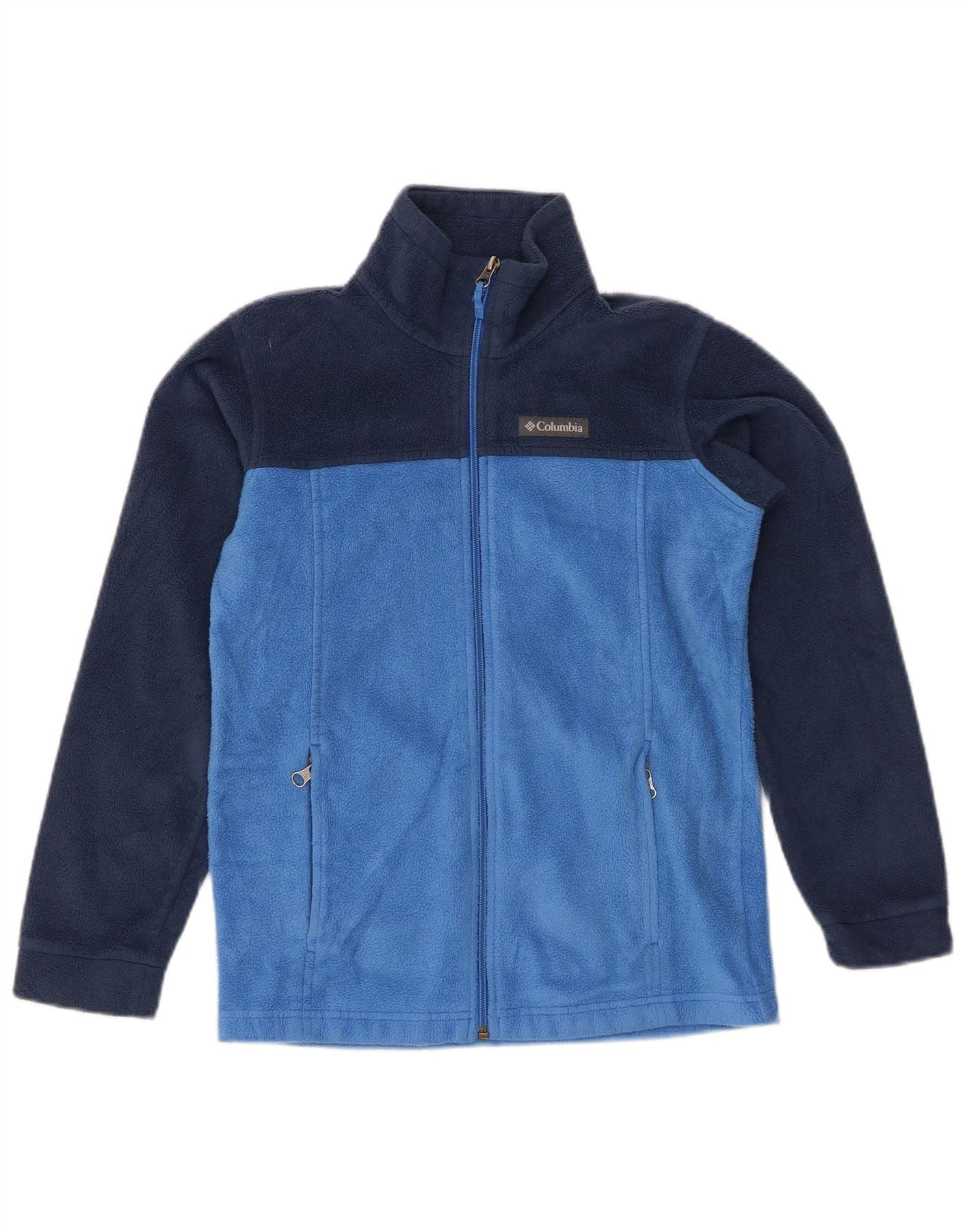 COLUMBIA Girls Fleece Jacket 10-11 Years Medium Blue Colourblock Polyester