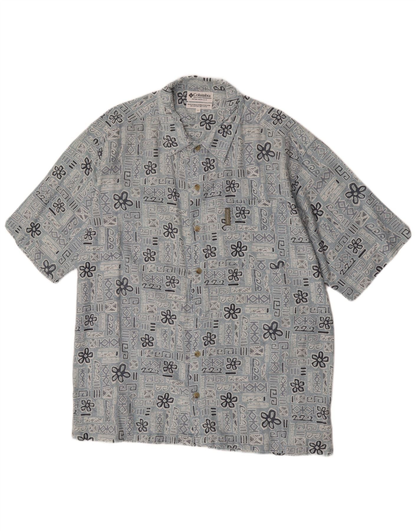 Columbia Herren-Kurzarmhemd, groß, blau, geblümt, Baumwolle