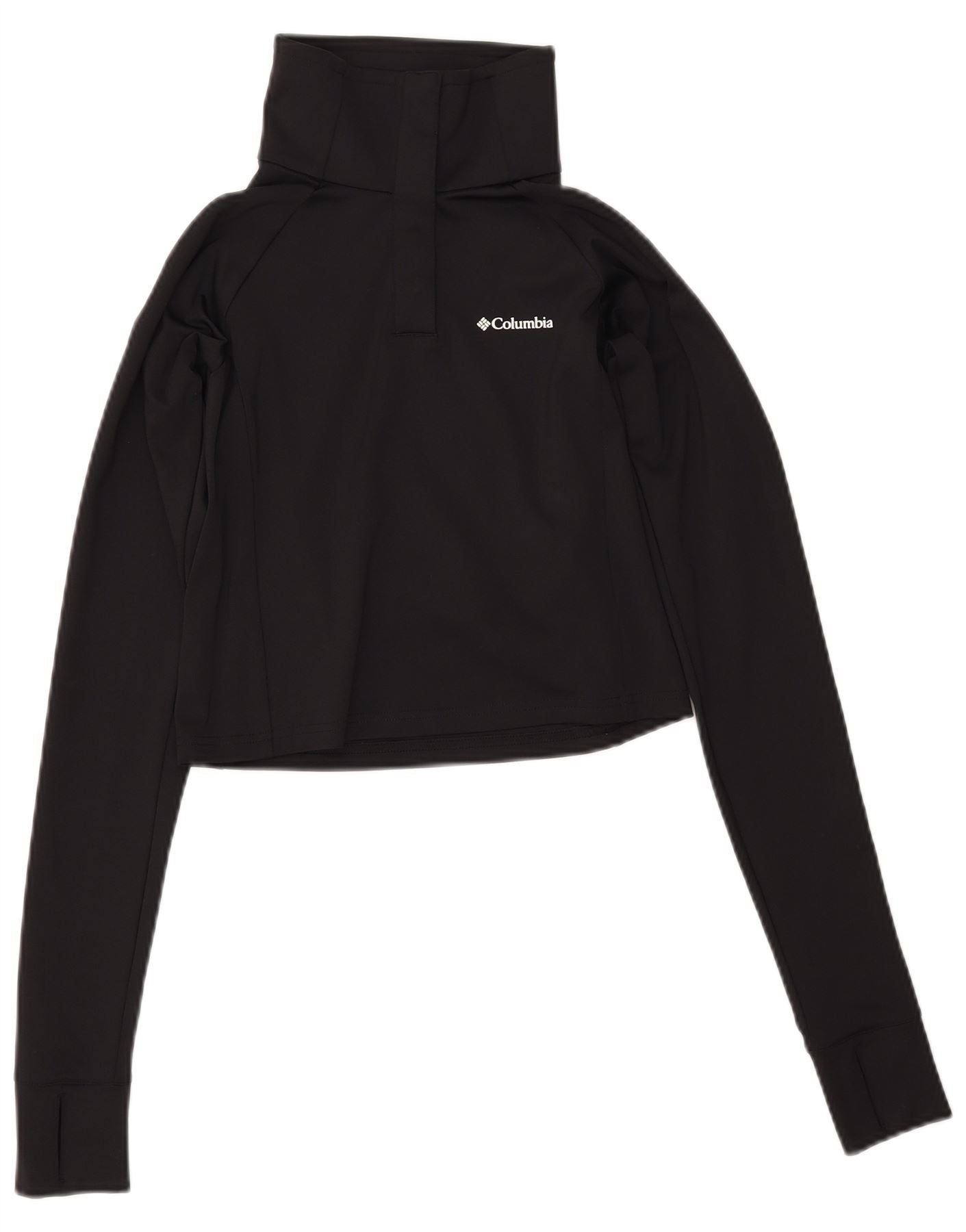 COLUMBIA Damen Crop Button Neck Pullover Trainingsanzug Top UK 12 Medium Schwarz