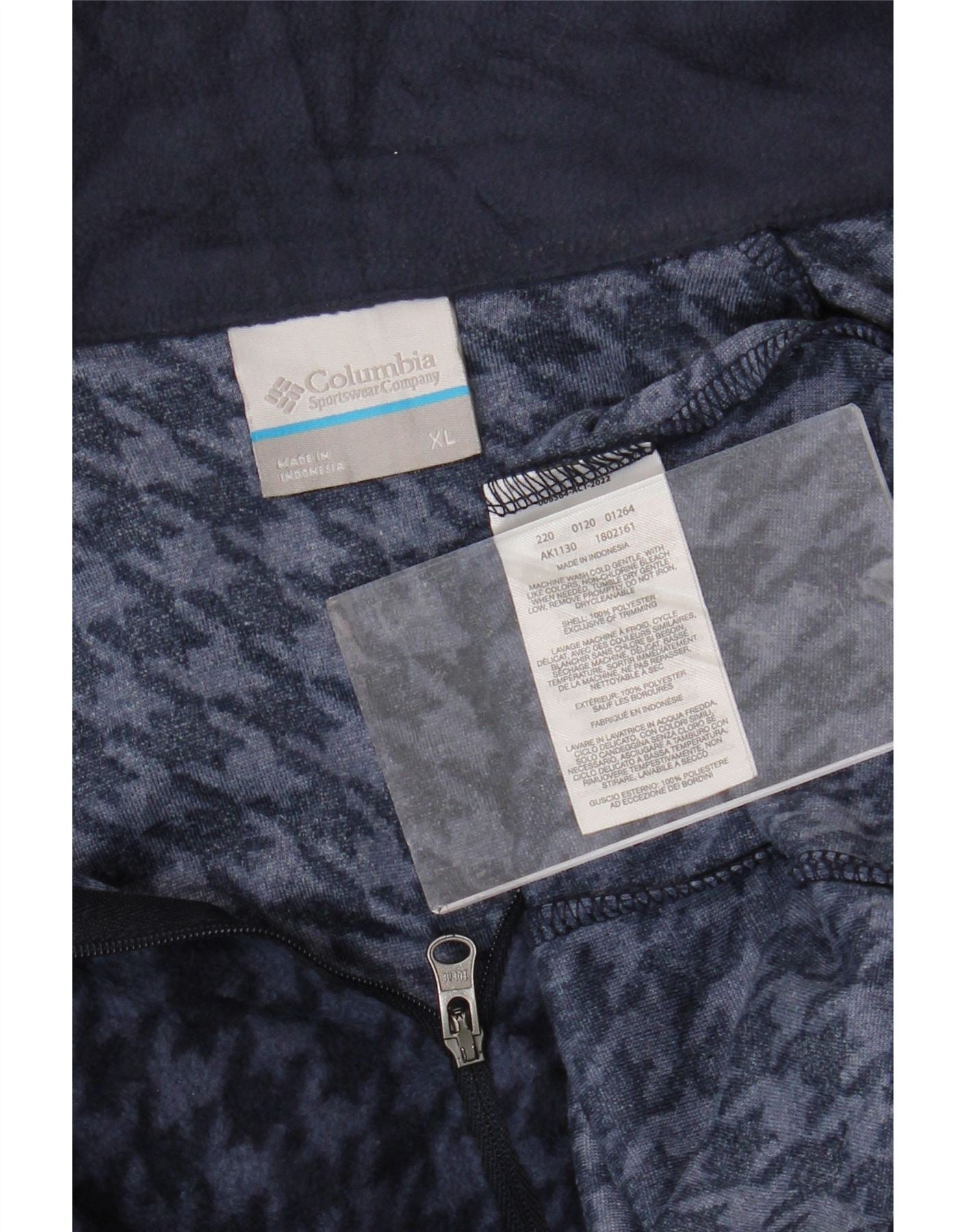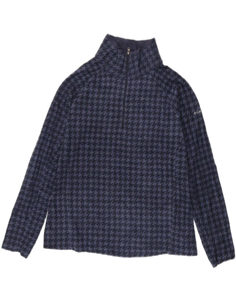 COLUMBIA Womens Zip Neck Fleece Jumper UK 18 XL Navy Blue Houndstooth