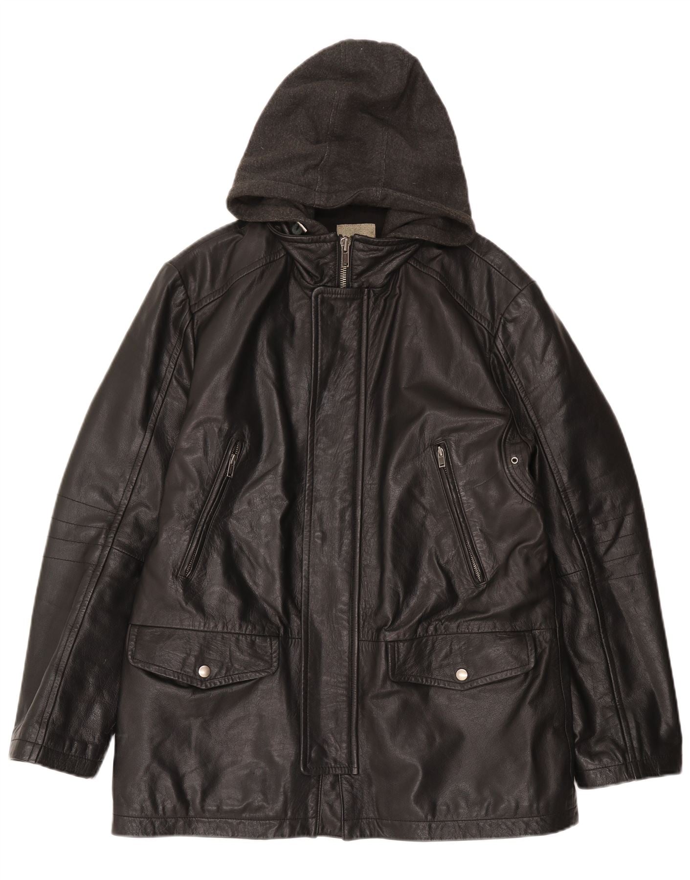 CONBIPEL Herren-Lederjacke mit Kapuze, IT 52 XL, schwarzes Leder