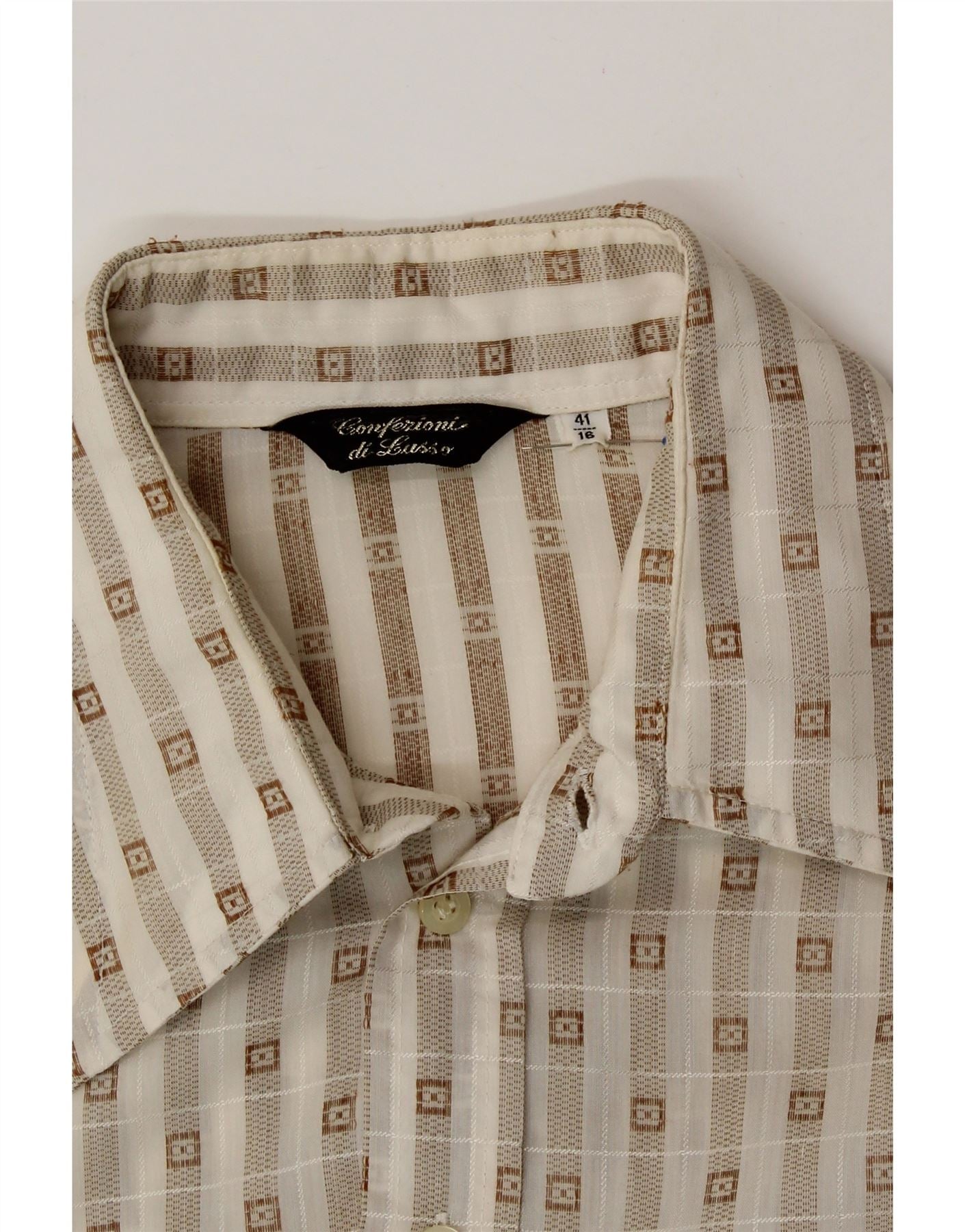 CONFEZIONI DI LUSSO Herrenhemd, Größe 16 41, groß, beige, geometrisch