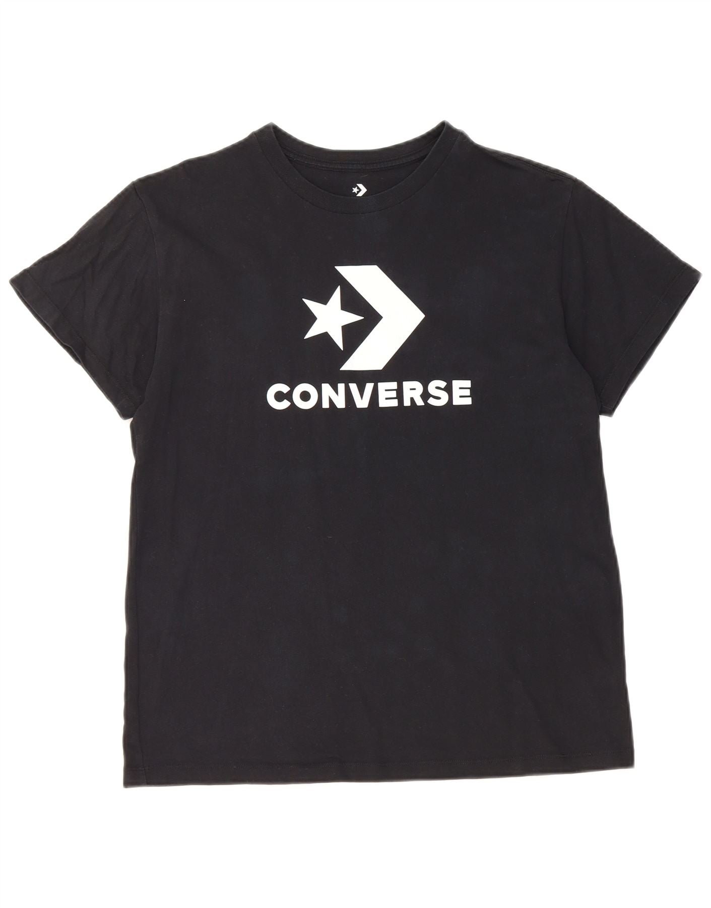 CONVERSE Damen Grafik T-Shirt Top UK 14 Mittelschwarze Baumwolle