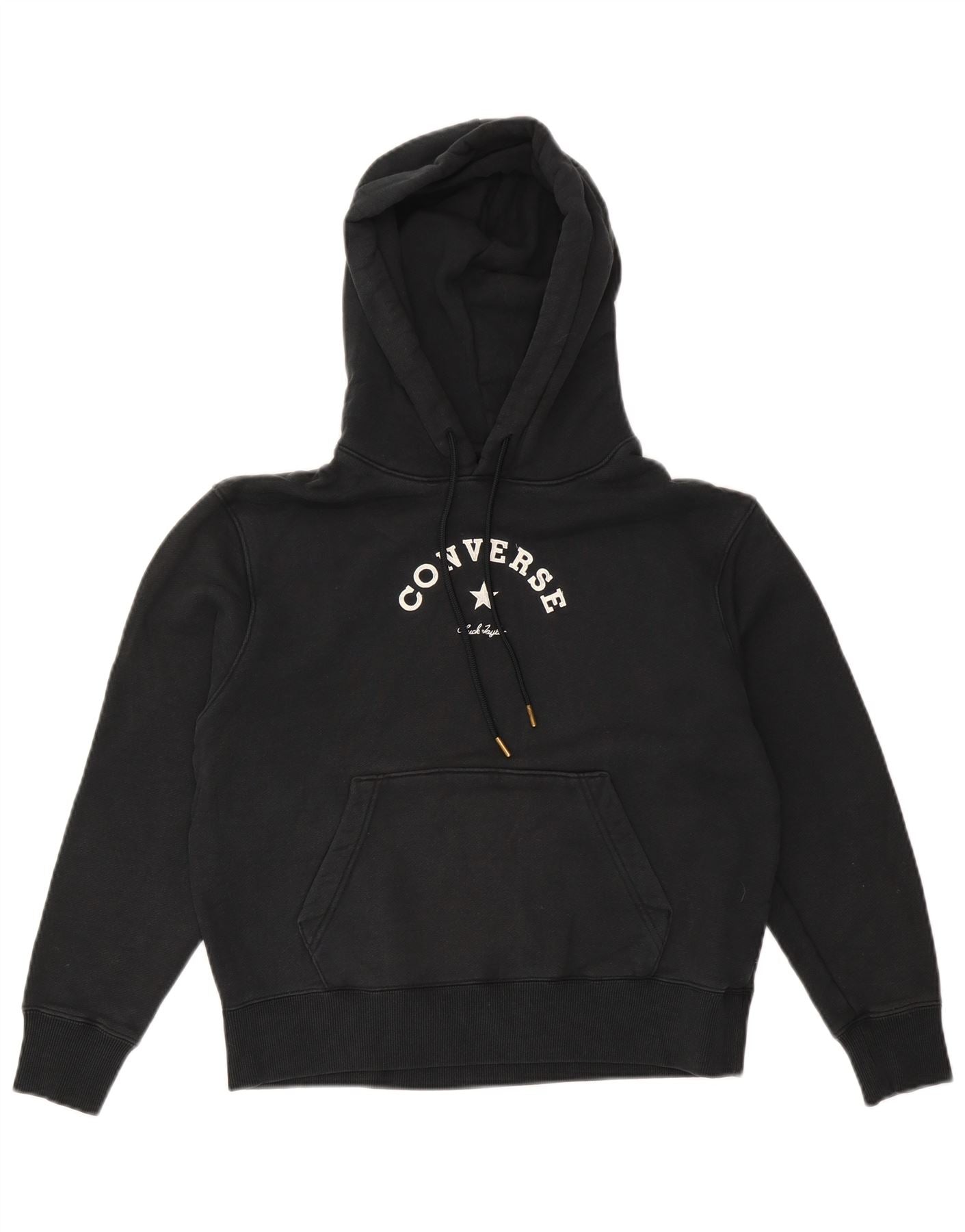 CONVERSE Damen-Pullover mit übergroßem grafischem Kapuzenpullover, Gr. 10, Größe S, Schwarz, Baumwolle