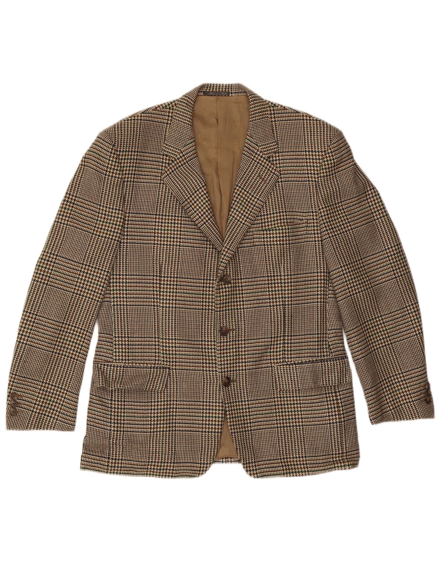 CORNELIANI Herren-Blazer mit 3 Knöpfen, IT 50, große beige Hahnentritt-Wolle