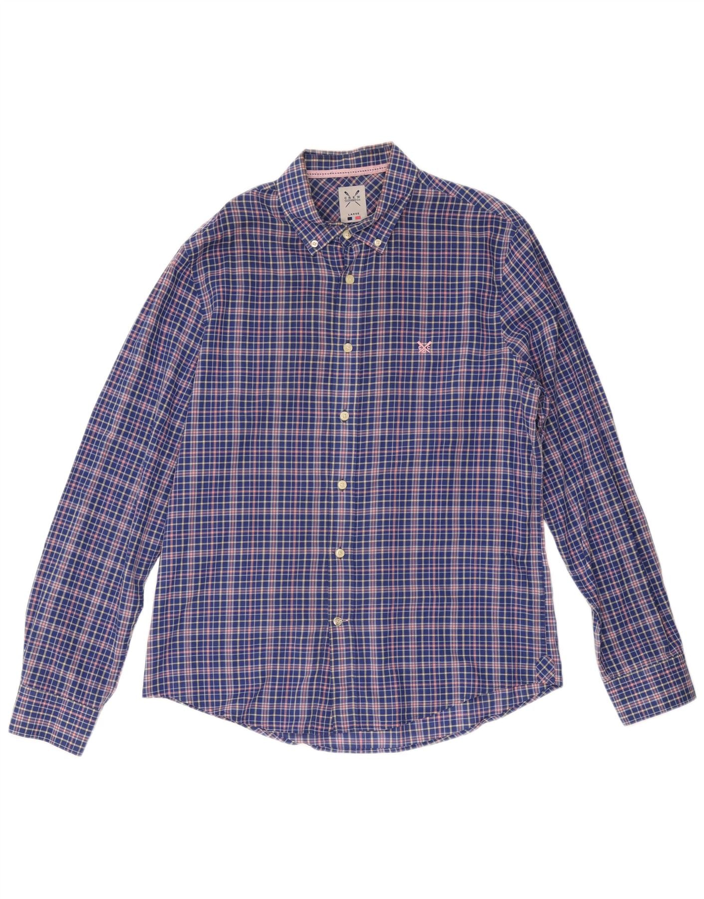 CREW CLOTHING Herren-Hemd mit lässiger Passform, groß, blau kariert, Baumwolle
