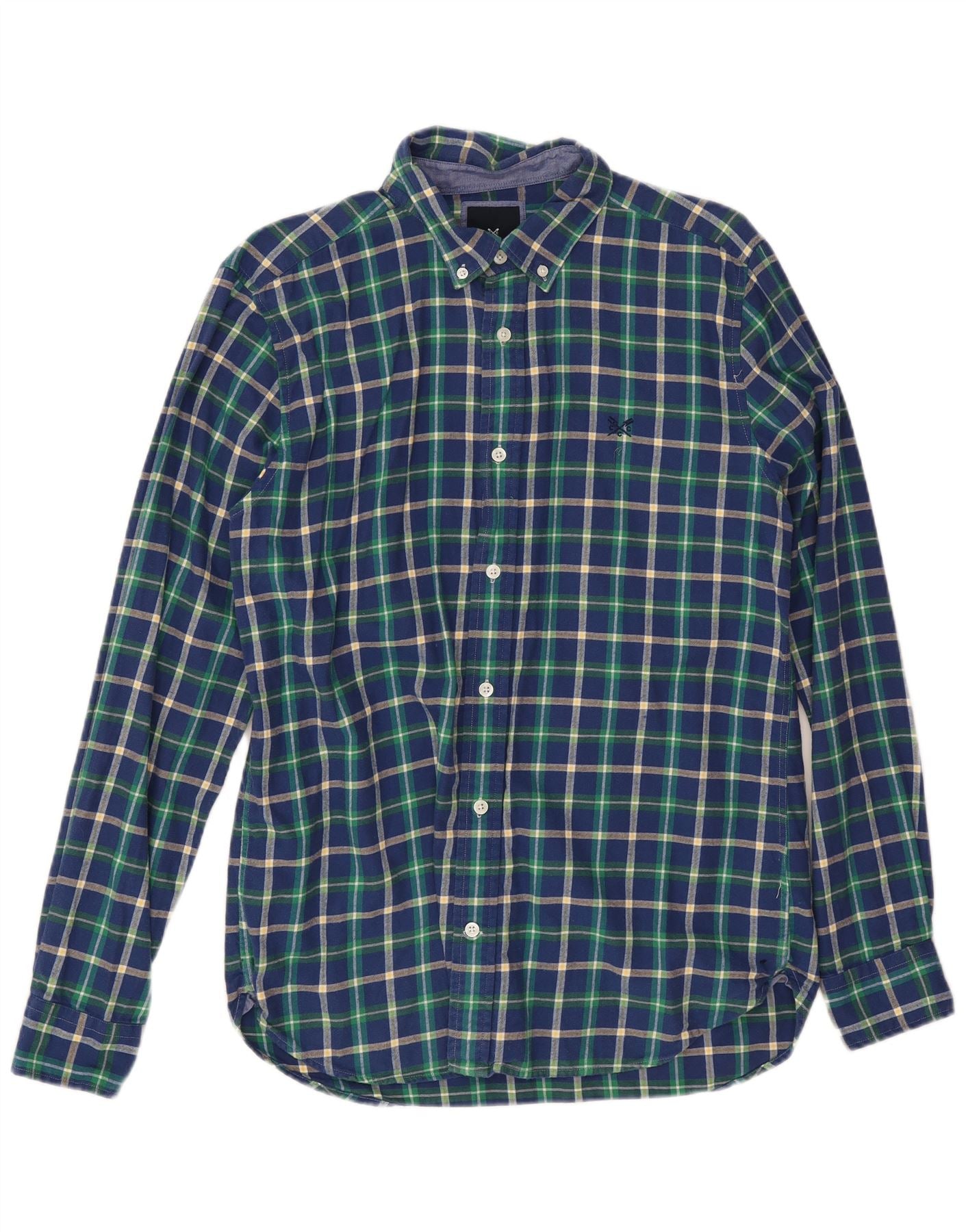 Crew Clothing Herren-Flanellhemd mit schmaler Passform, mittelblau, kariert, Baumwolle