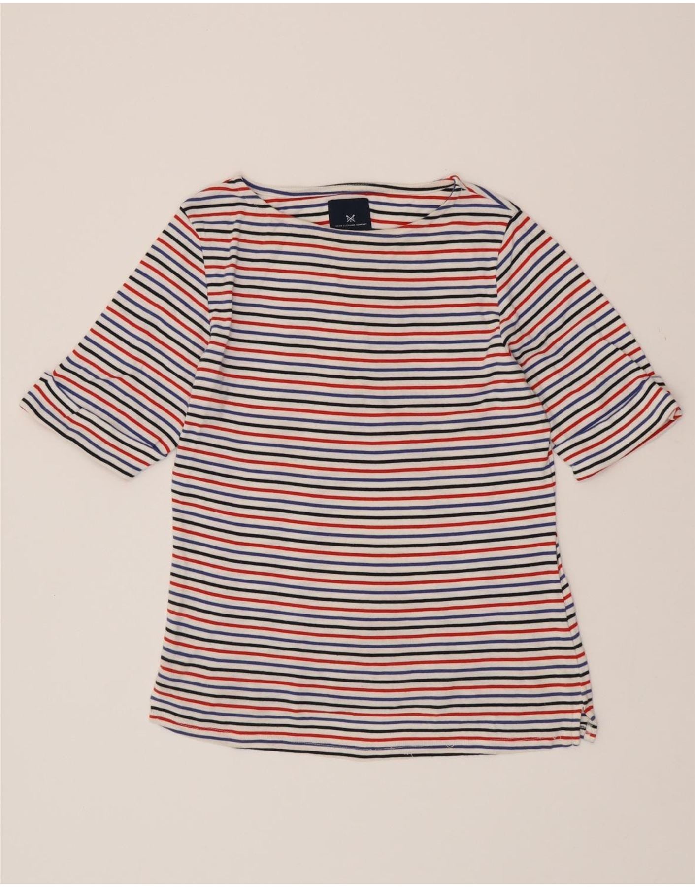 CREW CLOTHING Damen T-Shirt Top UK 14 Medium Mehrfarbig gestreift aus Baumwolle