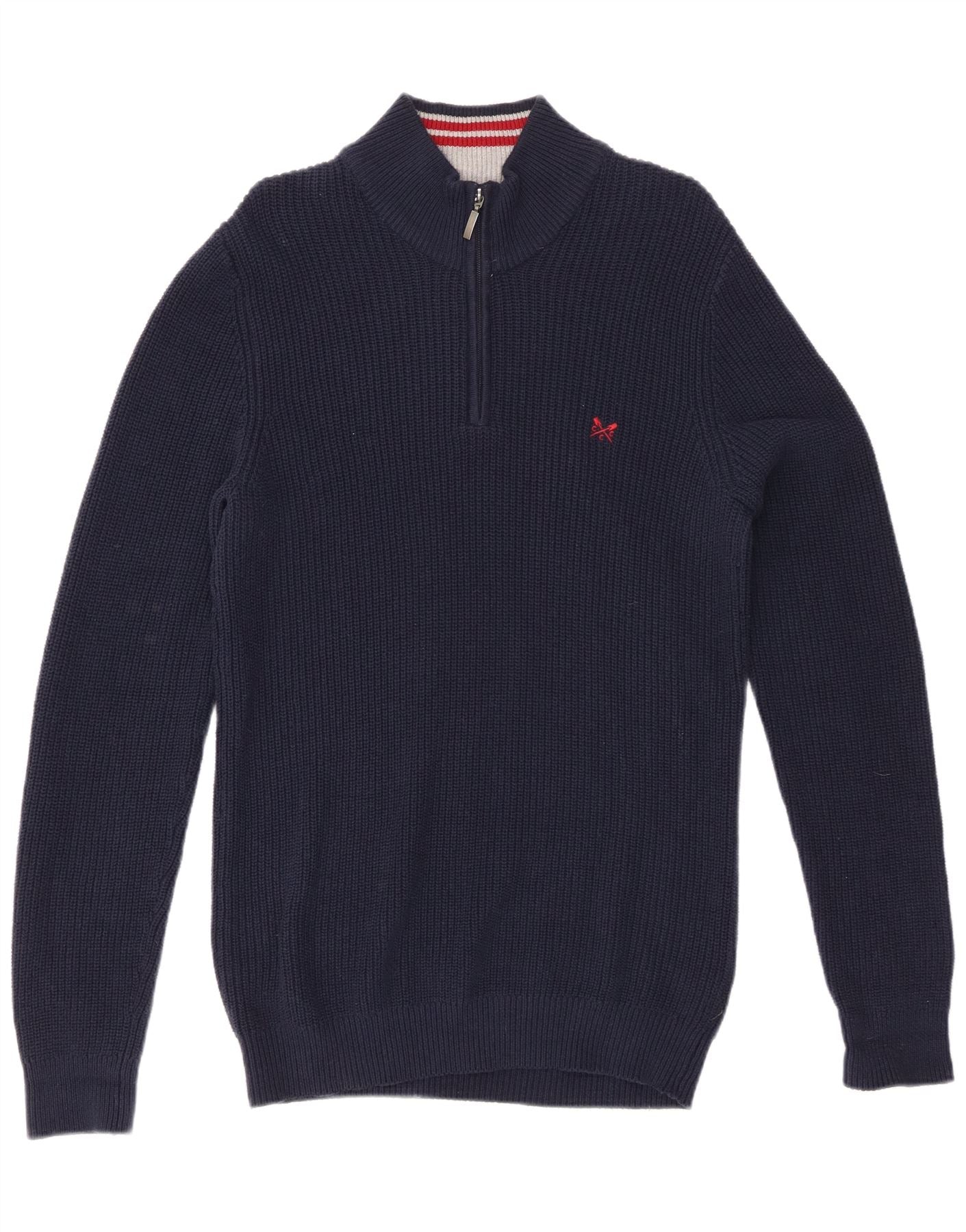 CREW CLOTHING Damen-Pullover mit Reißverschluss am Hals, UK 14, mittlere Marineblau-Baumwolle