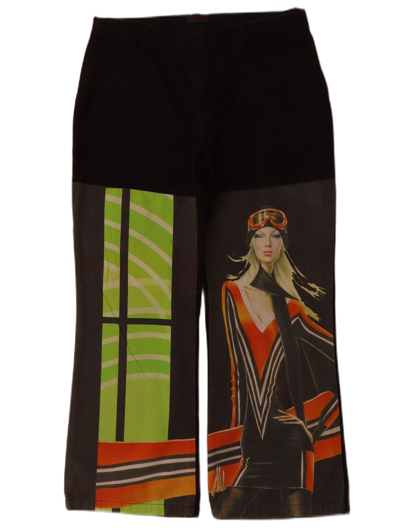 CUSTO BARCELONA Womens Graphic Cropped Trousers EU 42 Large W30 L25 Black