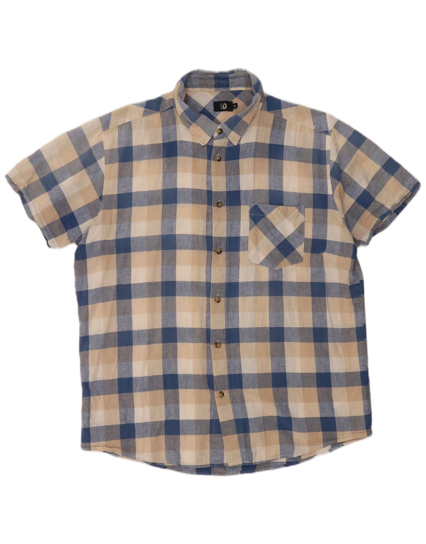 Dack's Herren Kurzarmhemd XL Beige Gingham Leinen