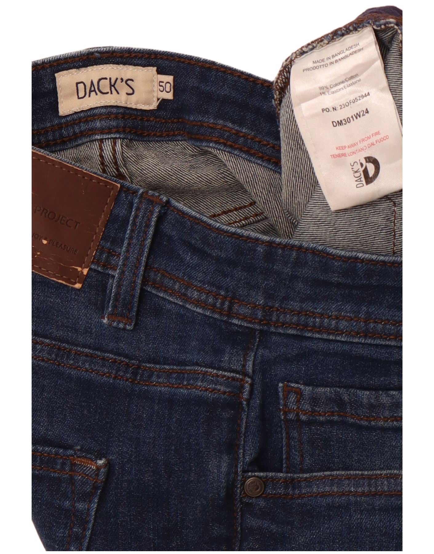 DACK'S Herren Straight Jeans IT 50 Large W34 L31 Marineblau Baumwolle