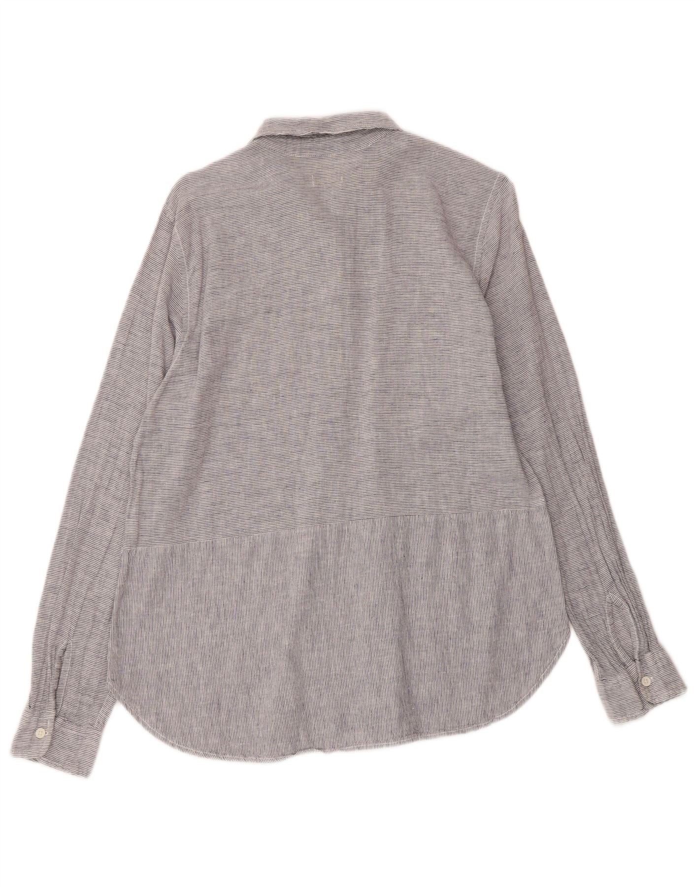 Dack's Damen-Pullover-Hemd, Größe 46, Grau, Nadelstreifen-Leinen