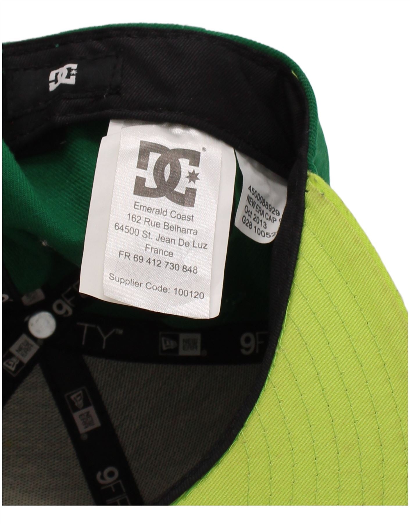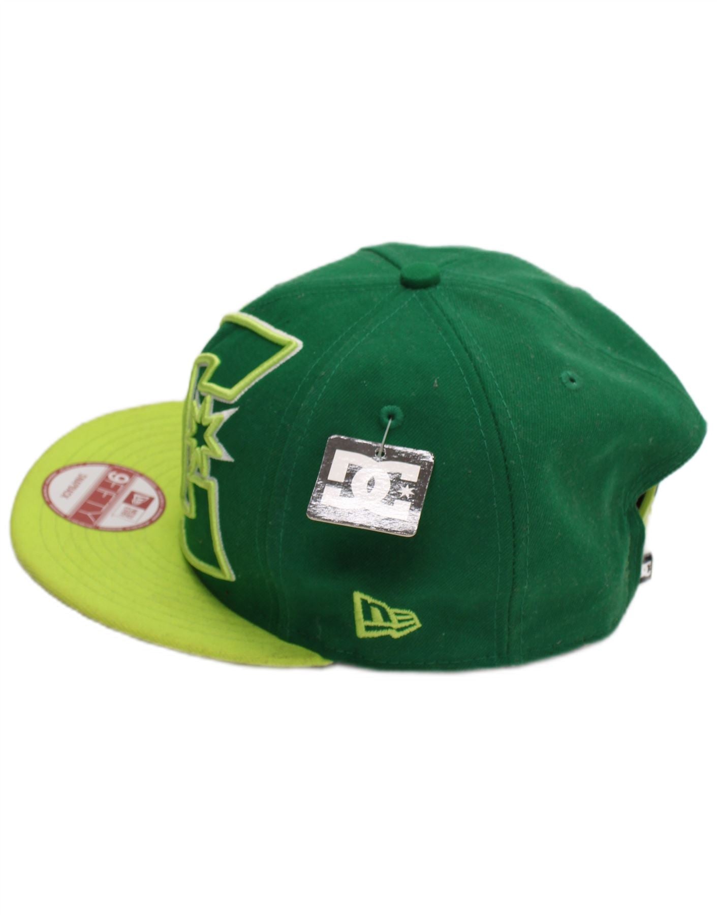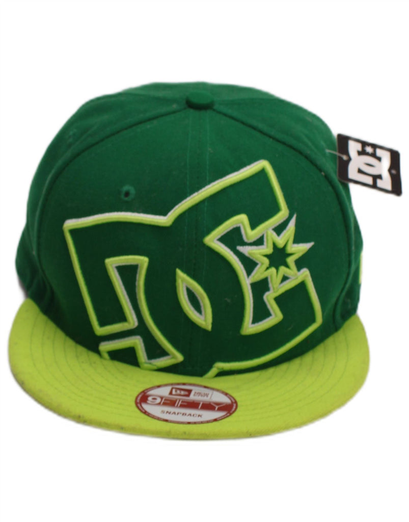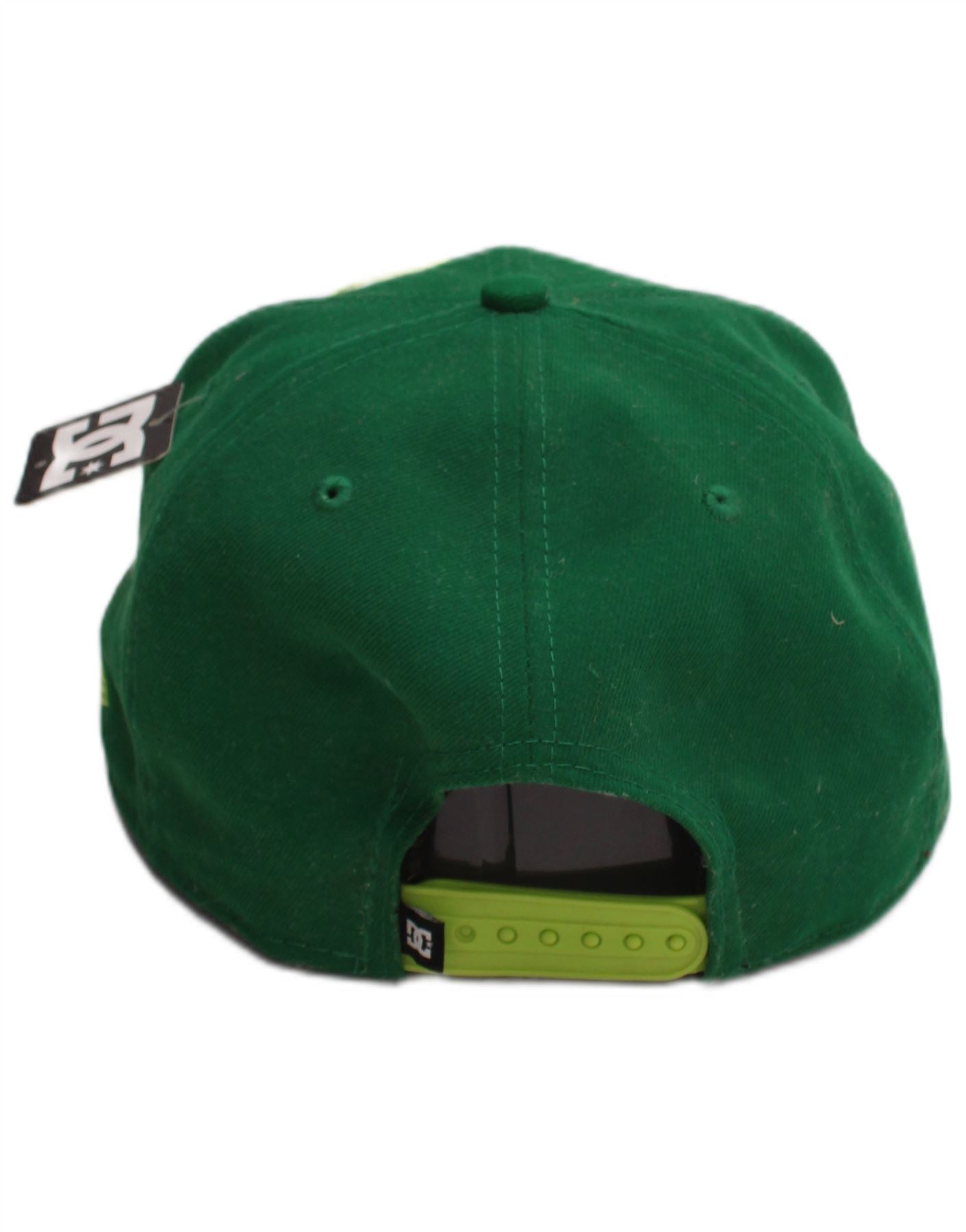 - AI Description: This DC mens Snapback Cap is crafted from durable woven fabric in a vibrant green. It features a prominent graphic and an embroidered logo accent on the front. The structured design includes a flat brim and a comfortable regular fit. An adjustable snap closure at the back ensures a custom, secure fit. This 9FIFTY style cap is perfect for sports enthusiasts, offering both style and practicality.