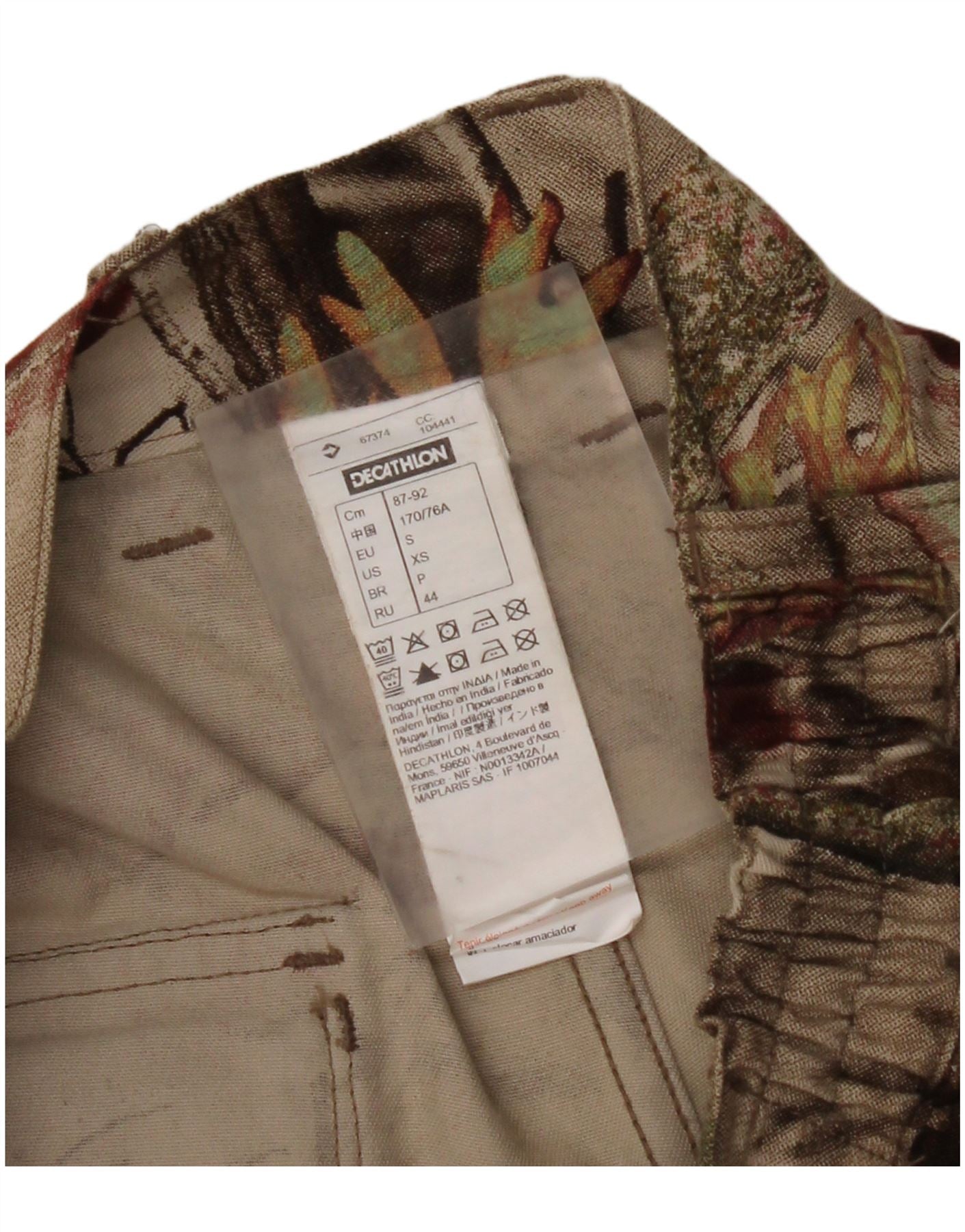 DECATHLON Gerade Cargohose für Damen, Größe S, W27, L30, Beige, Blumenmuster, Baumwolle
