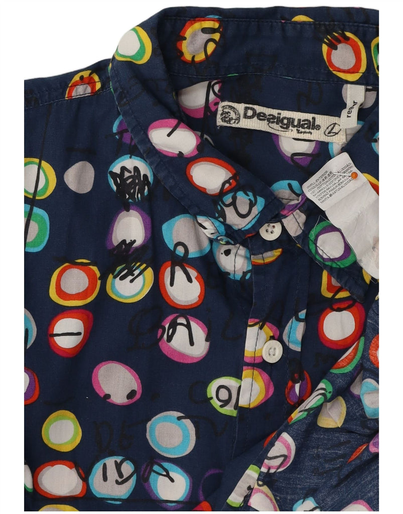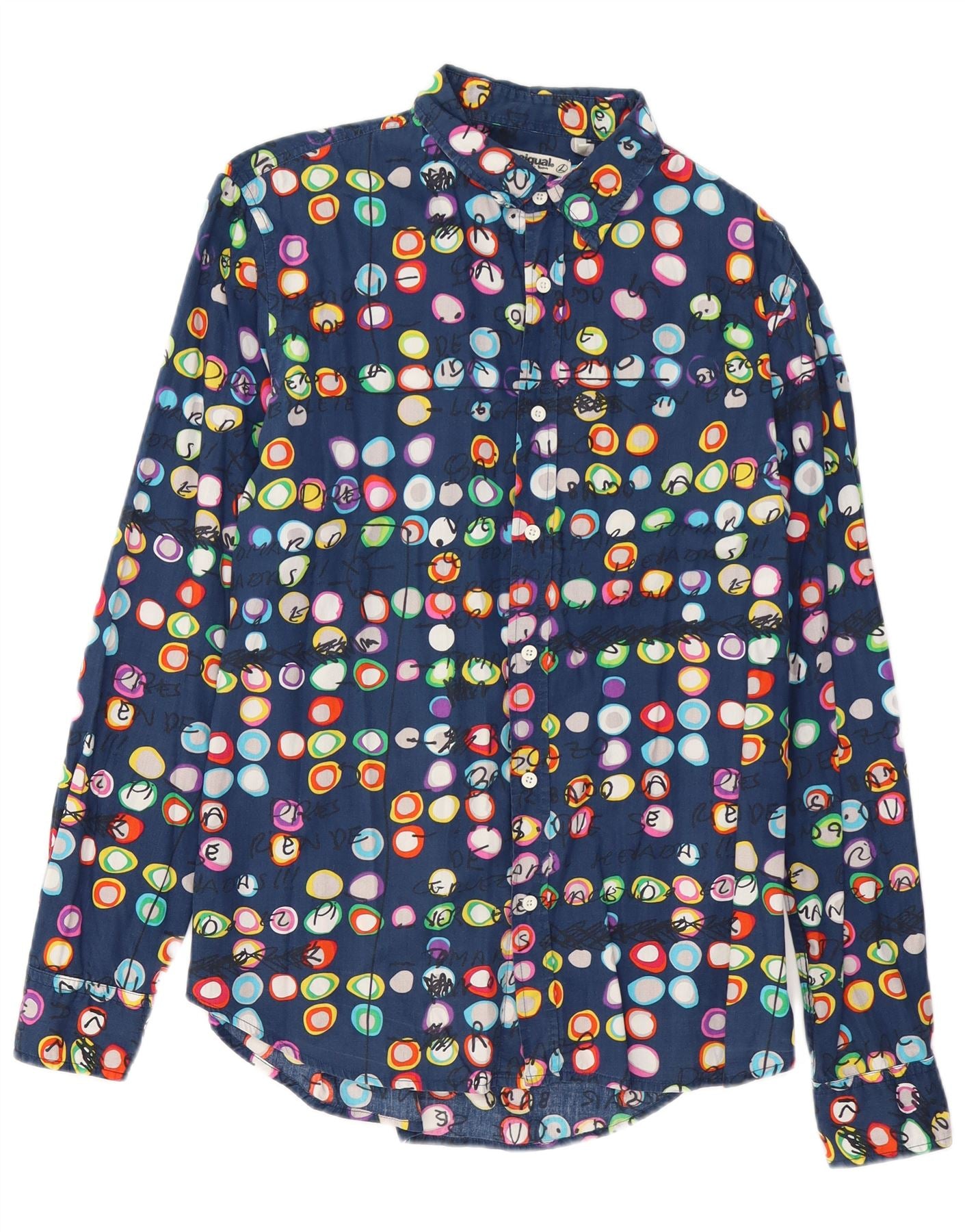 DESIGUAL Herren-Hemd mit abstraktem Muster, groß, marineblau, geometrische Baumwolle