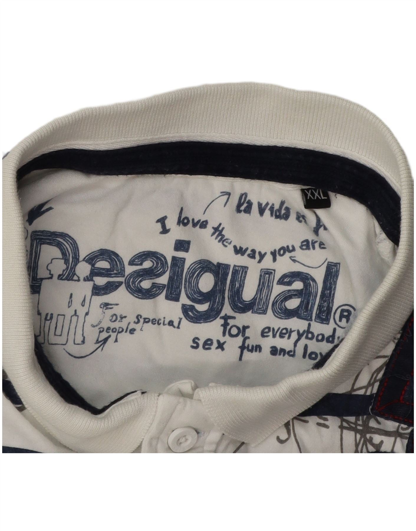 DESIGUAL Herren Grafik-Poloshirt 2XL Weiß gestreift