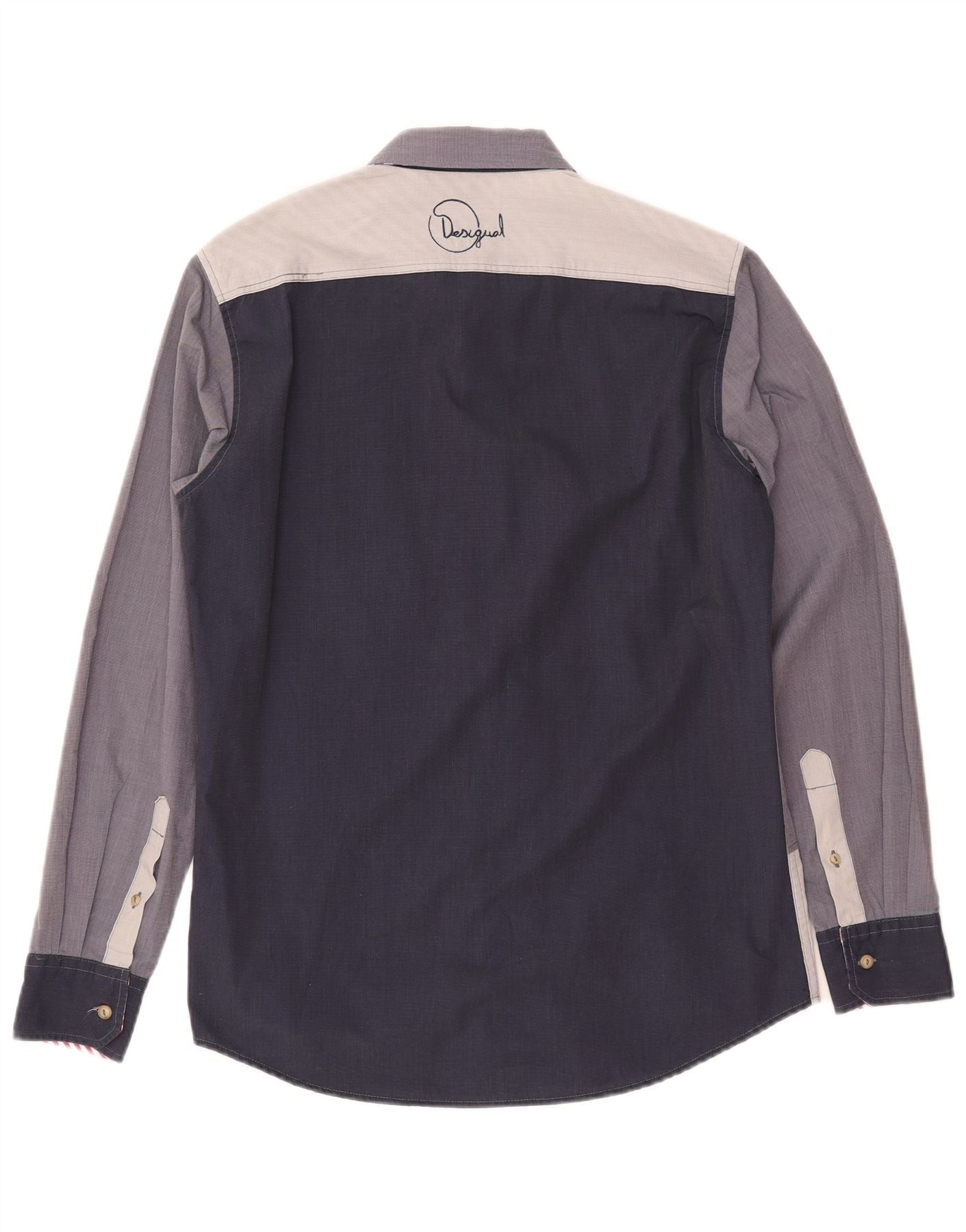 DESIGUAL Herren-Grafikhemd aus mittelblauer, marineblauer Colourblock-Baumwolle
