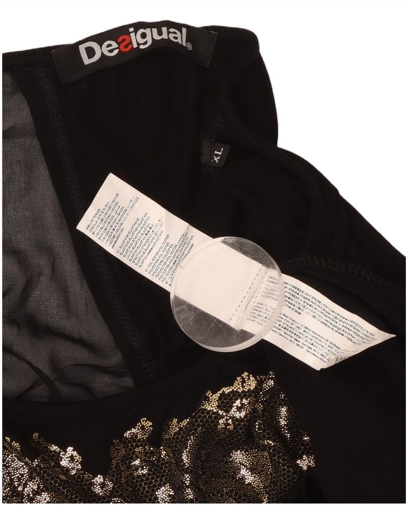 DESIGUAL Womens 3/4 Sleeve Blouse Top UK 18 XL Black Floral Viscose