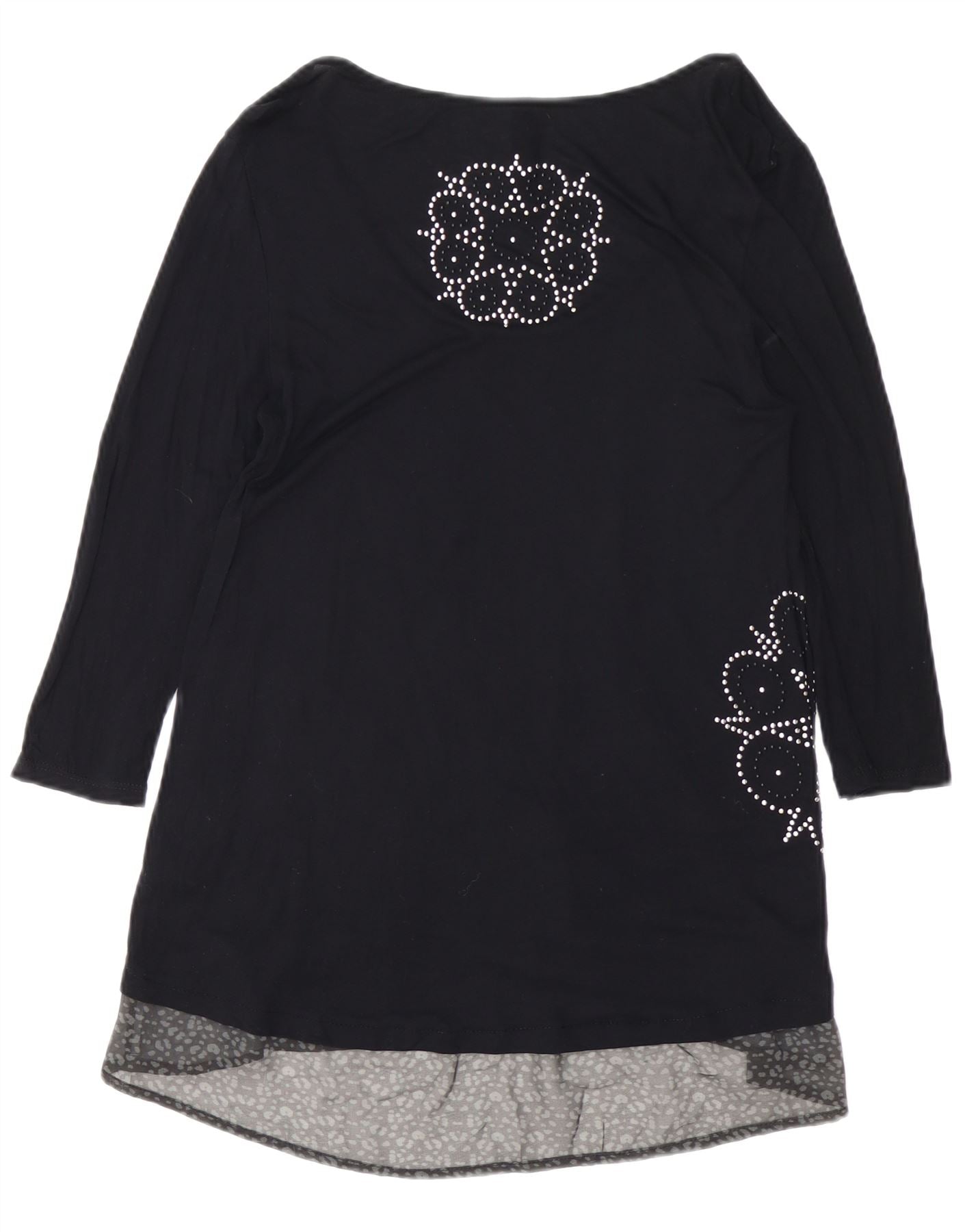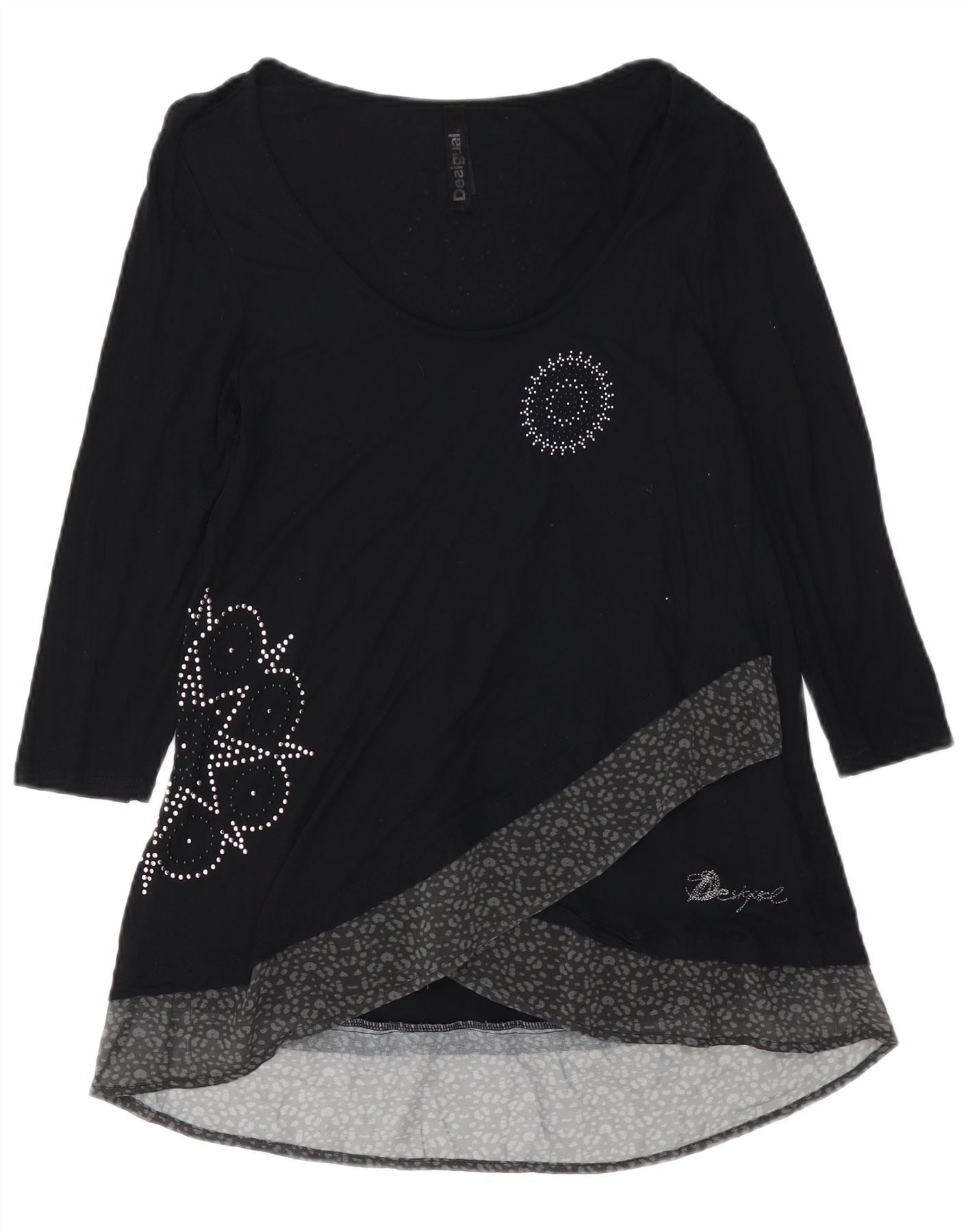 DESIGUAL Damen-Kleid mit 3/4-Ärmeln, grafischer A-Linie, UK 12, Mittelschwarz, Viskose