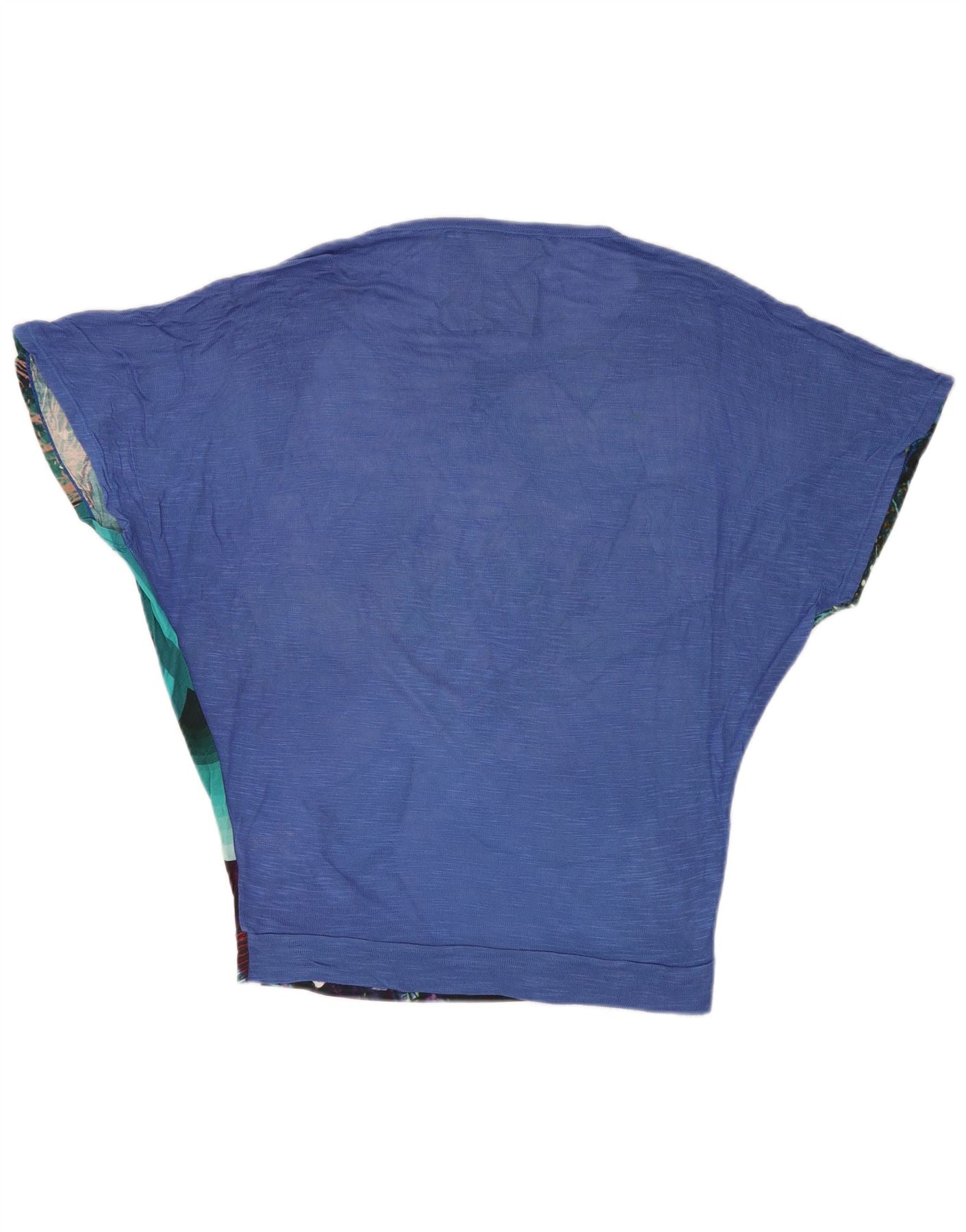 DESIGUAL Damen-Blusenoberteil mit Fledermausärmeln, Gr. 10, klein, Viskose mit blauem Blumenmuster