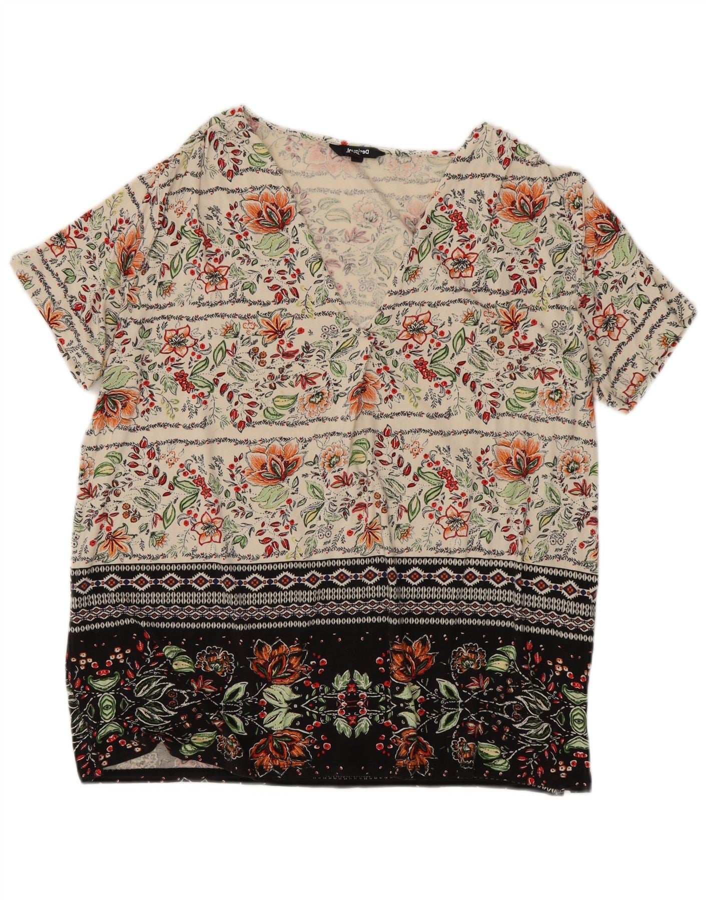 DESIGUAL Damen Bluse Top UK 20 2XL Off White Floral Viscose