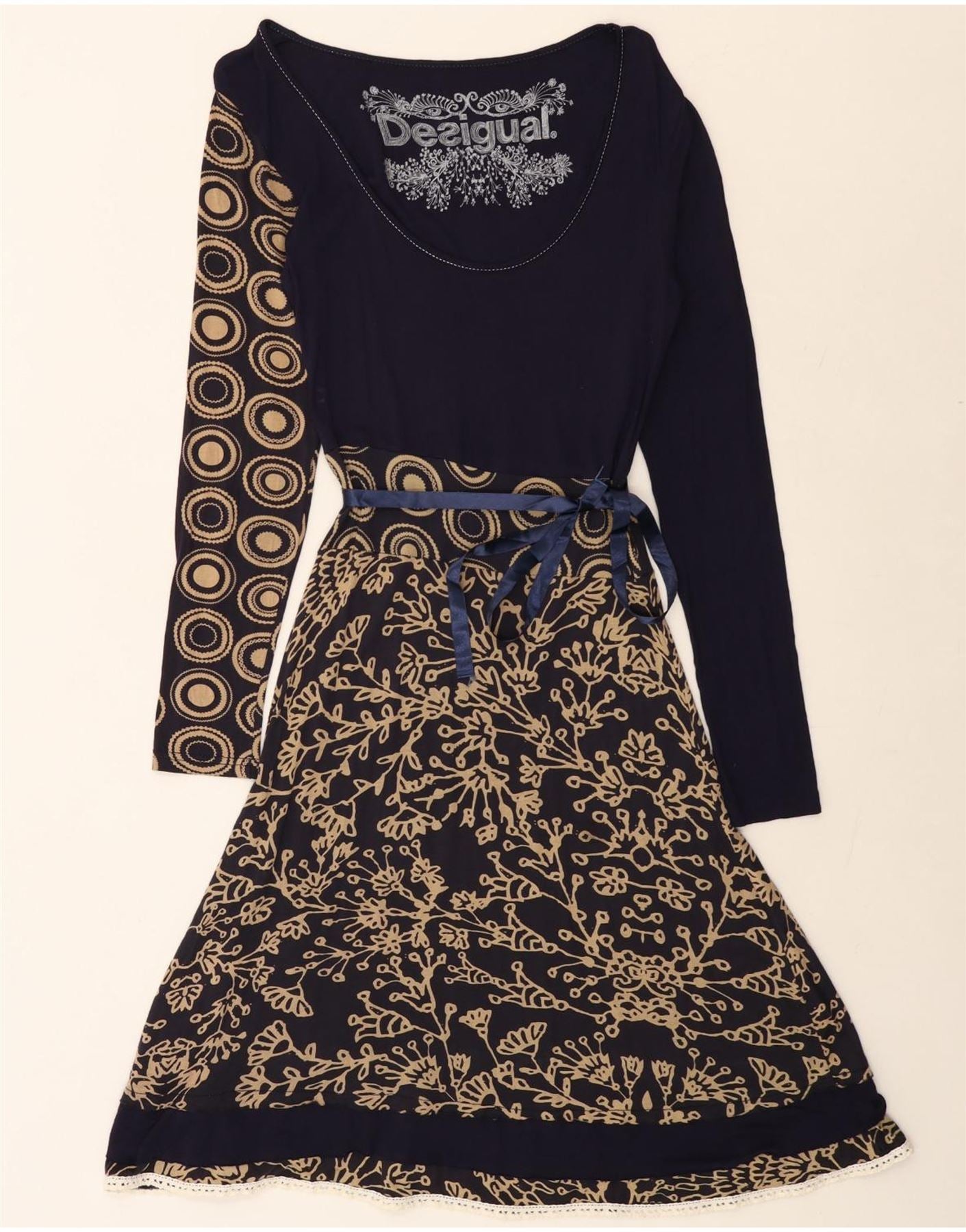 DESIGUAL Grafisches A-Linien-Kleid für Damen, UK 12, Mittel, Marineblau, Blumenmuster