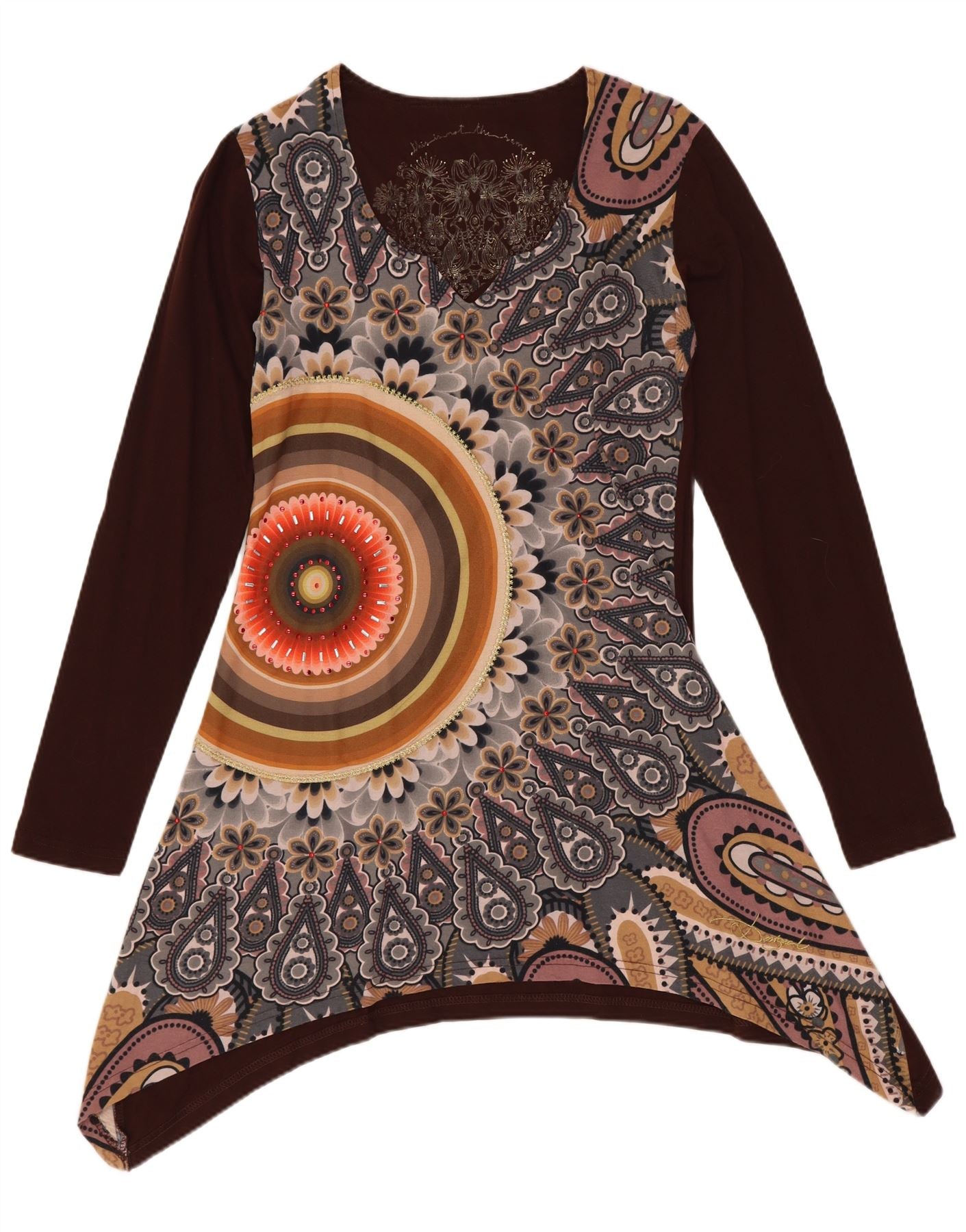 DESIGUAL Grafisches asymmetrisches Tunikakleid für Damen UK 10 Kleines braunes Blumenmuster