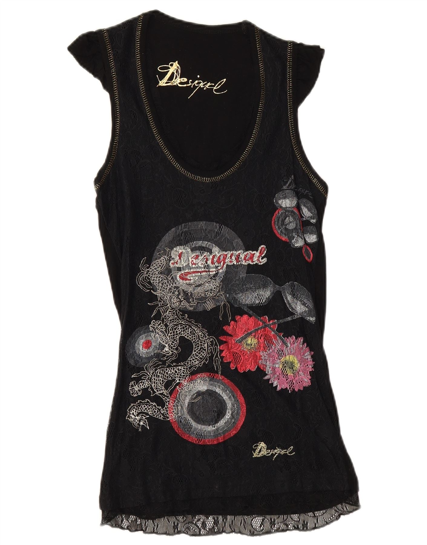 Desigual Womens Graphic Bluse Top UK 6 XS Schwarz geblümt