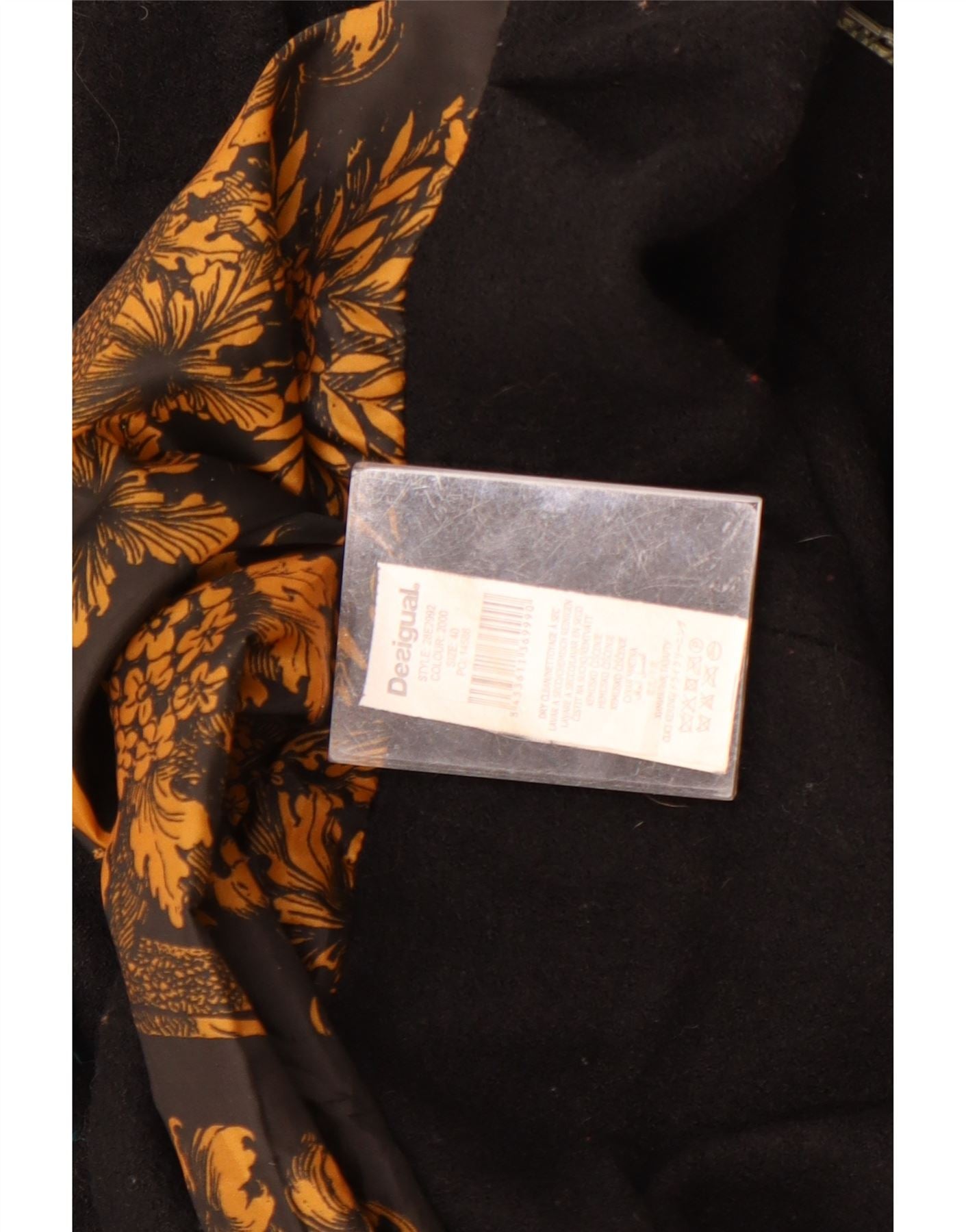 Desigual Damen grafischer zweireihiger Mantel EU 40 Mittelschwarz geblümt