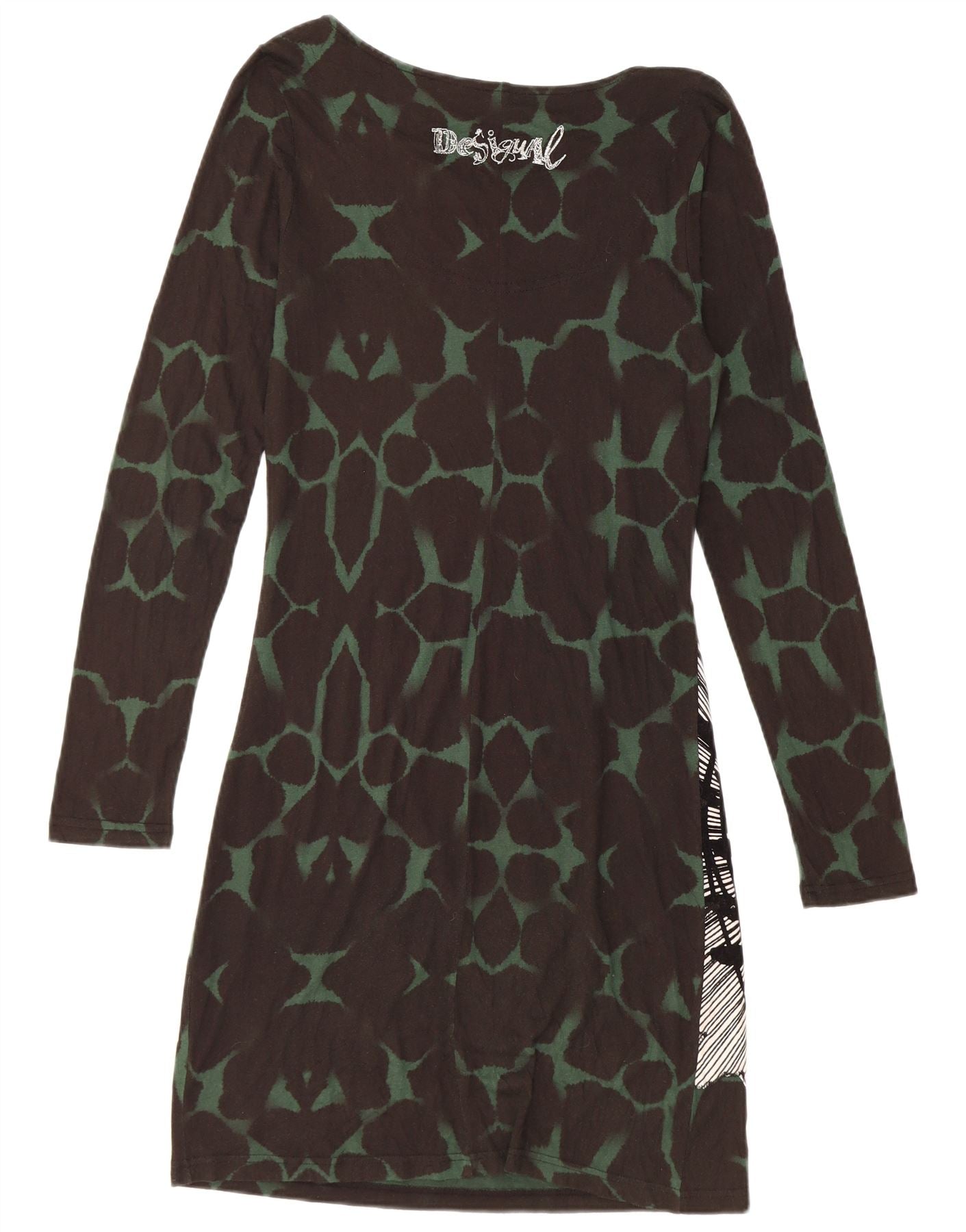 DESIGUAL Grafisches Langarm-Etuikleid für Damen UK 12 Mittelschwarz geblümt