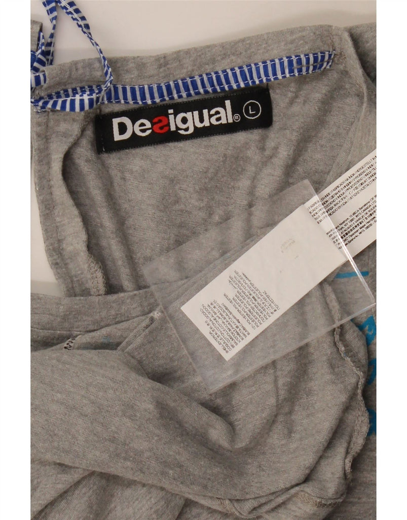 DESIGUAL Womens Graphic T-Shirt Top UK 14 Large Grey Paisley Cotton Heart