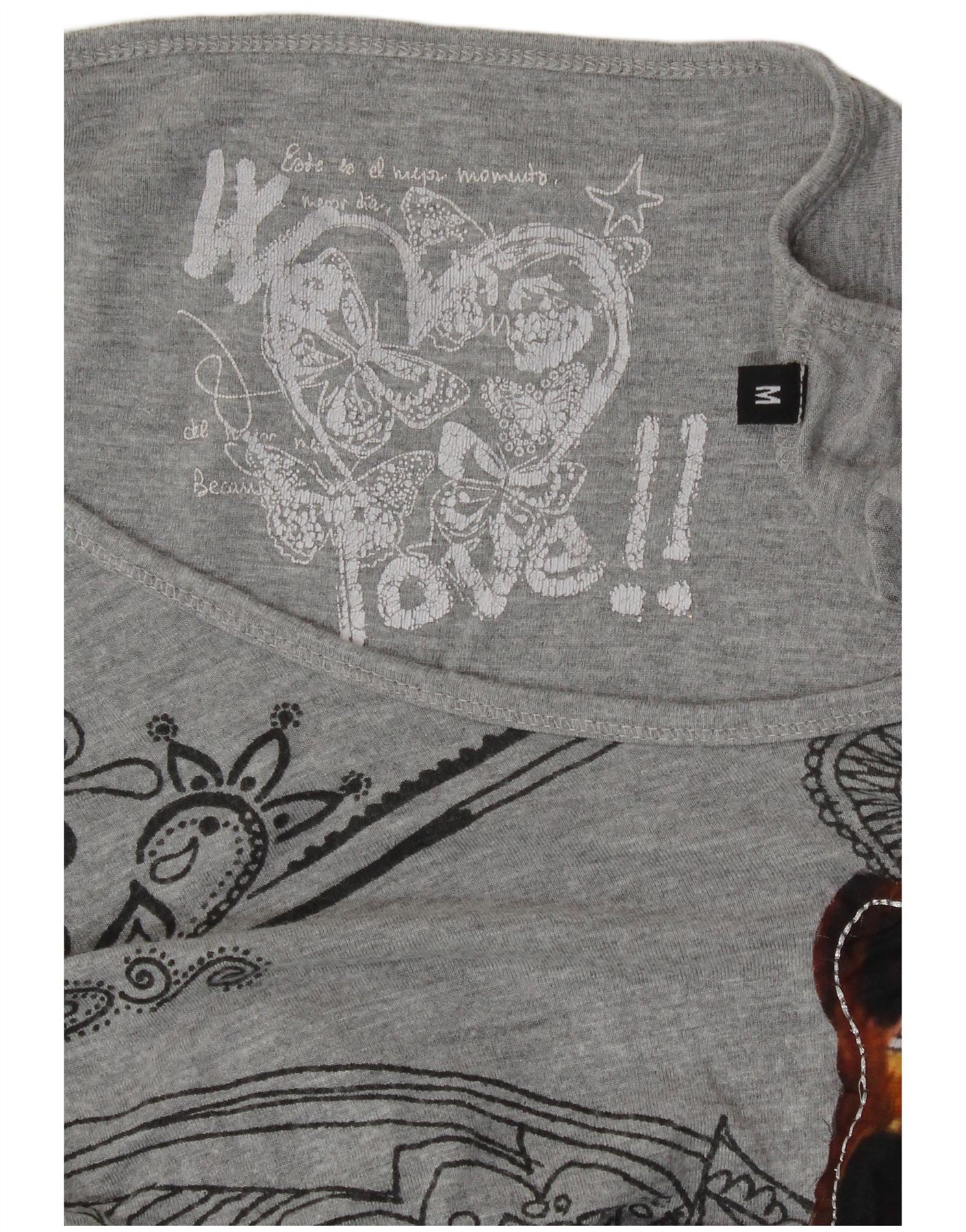 DESIGUAL Damen Grafik-T-Shirt-Oberteil UK 14 Mittelgrauer Schmetterling