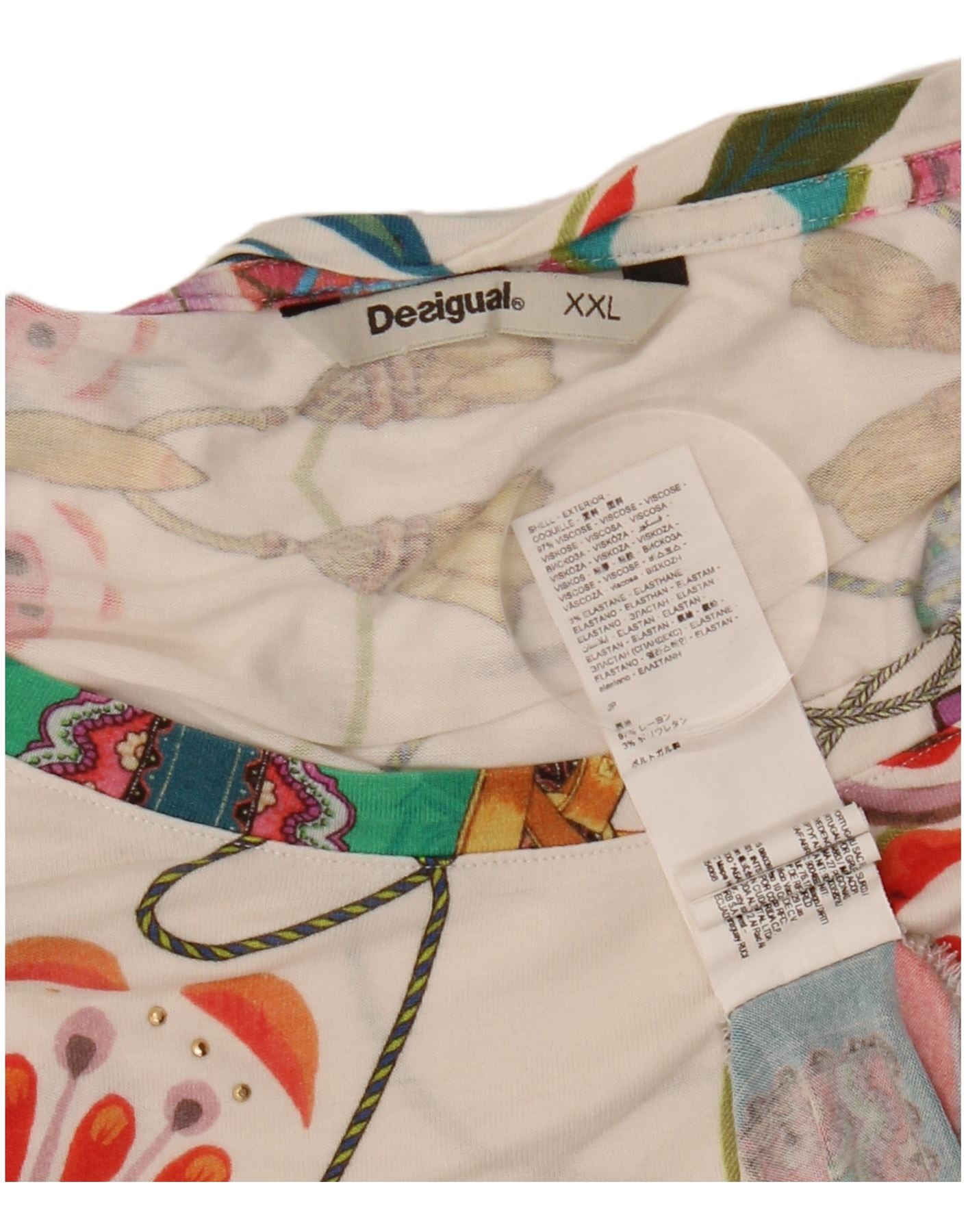 DESIGUAL Damen Grafik-T-Shirt-Oberteil UK 20 2XL Mehrfarbige Blumen-Viskose