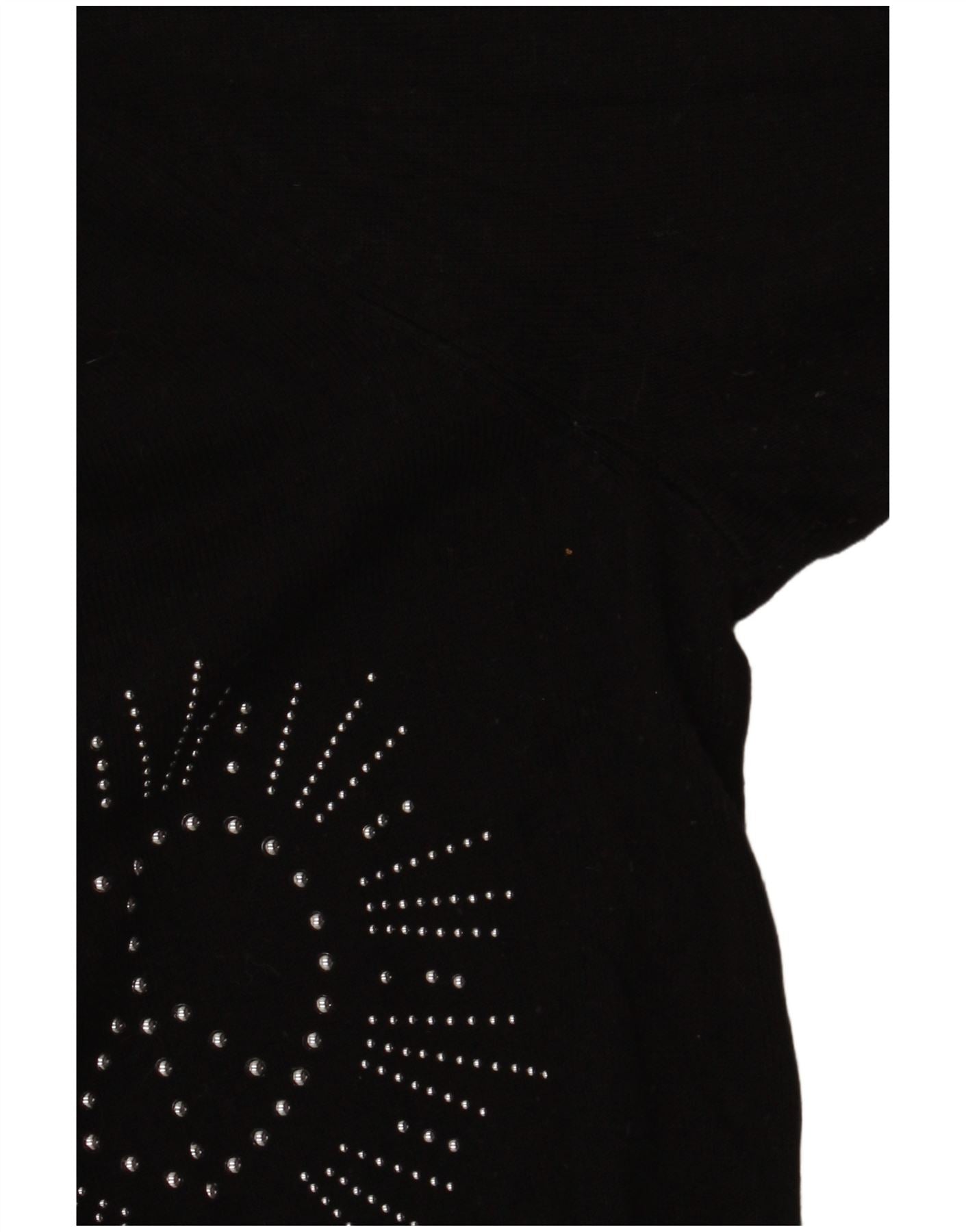 DESIGUAL Damen-Pullover mit grafischem V-Ausschnitt, UK 16, Größe L, Schwarz, Synthetik