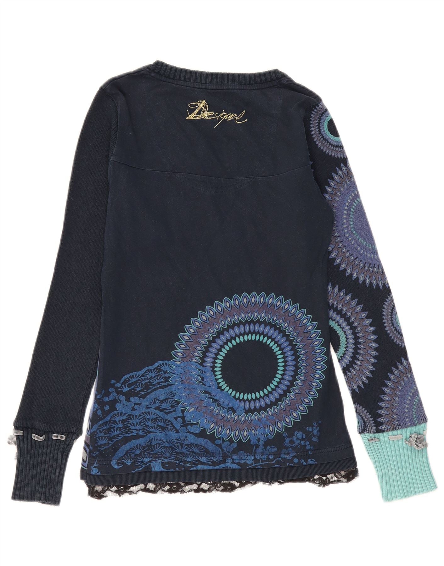DESIGUAL Damen-Pullover mit grafischem V-Ausschnitt, Gr. 8, Marineblau mit Blumenmuster