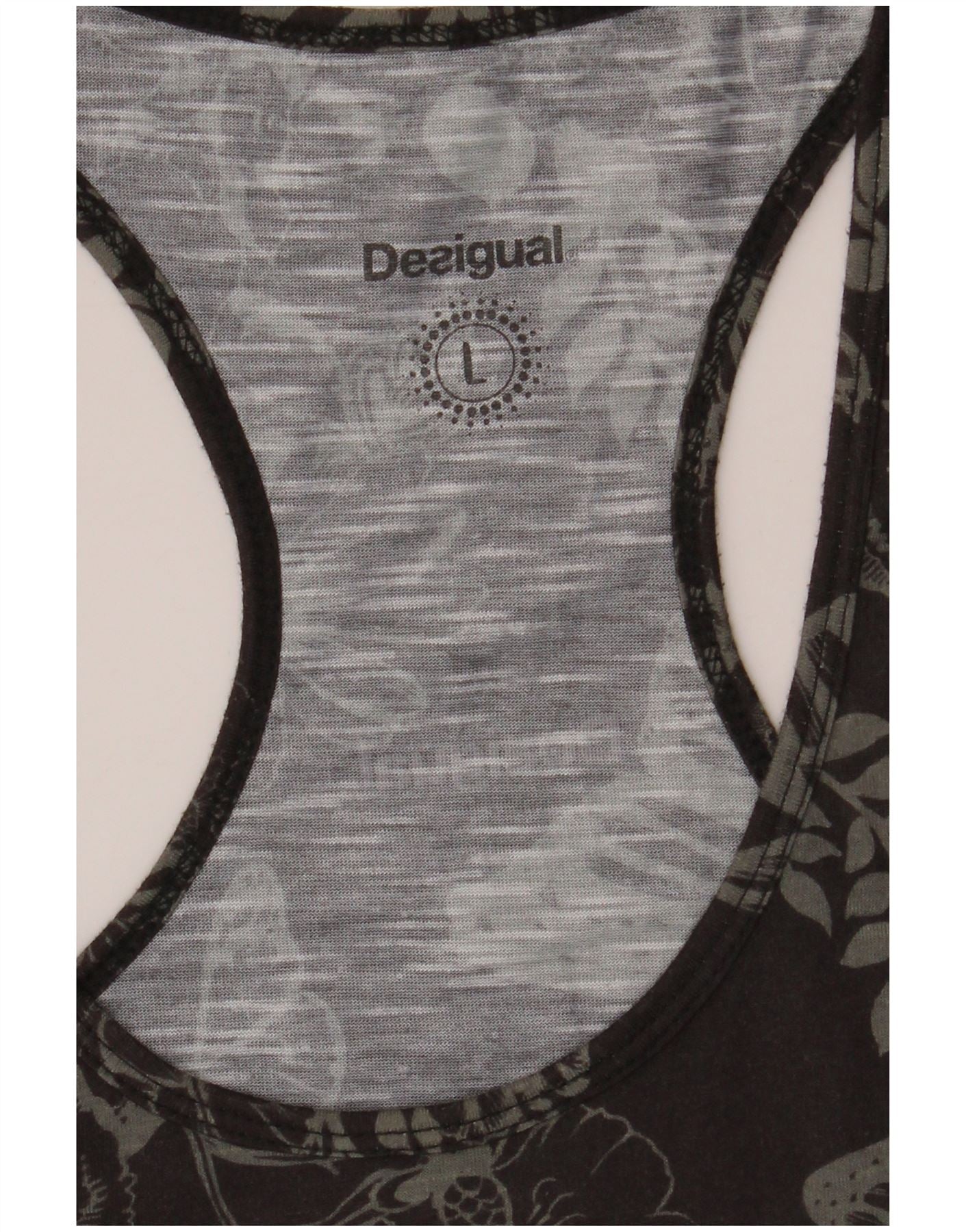 Desigual Womens Graphic Vest Top UK 14 Large Black Floral