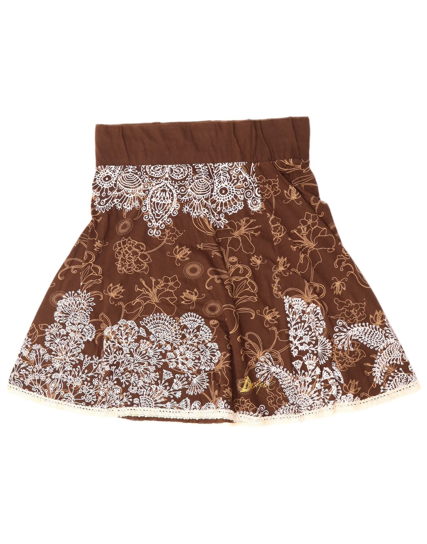 DESIGUAL Damen-Rock in A-Linie mit hoher Taille, Größe L, W30, braun, geblümt, Baumwolle