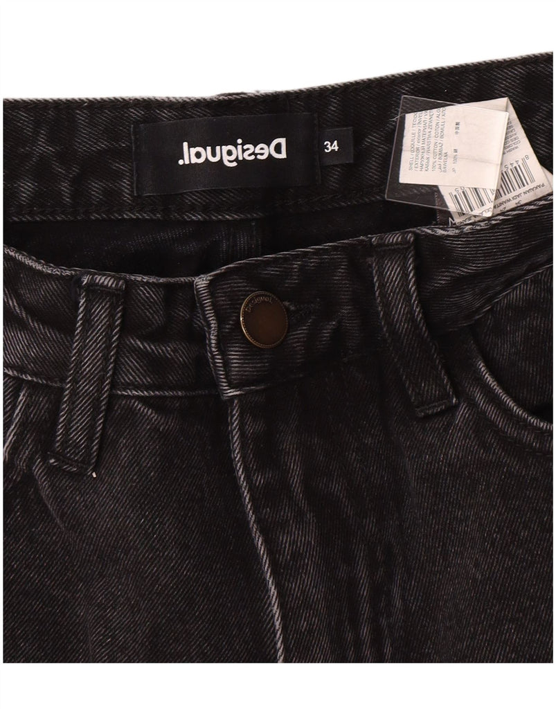DESIGUAL Womens Mickey Mouse Graphic Straight Jeans EU 34 XS W24 L27 Black