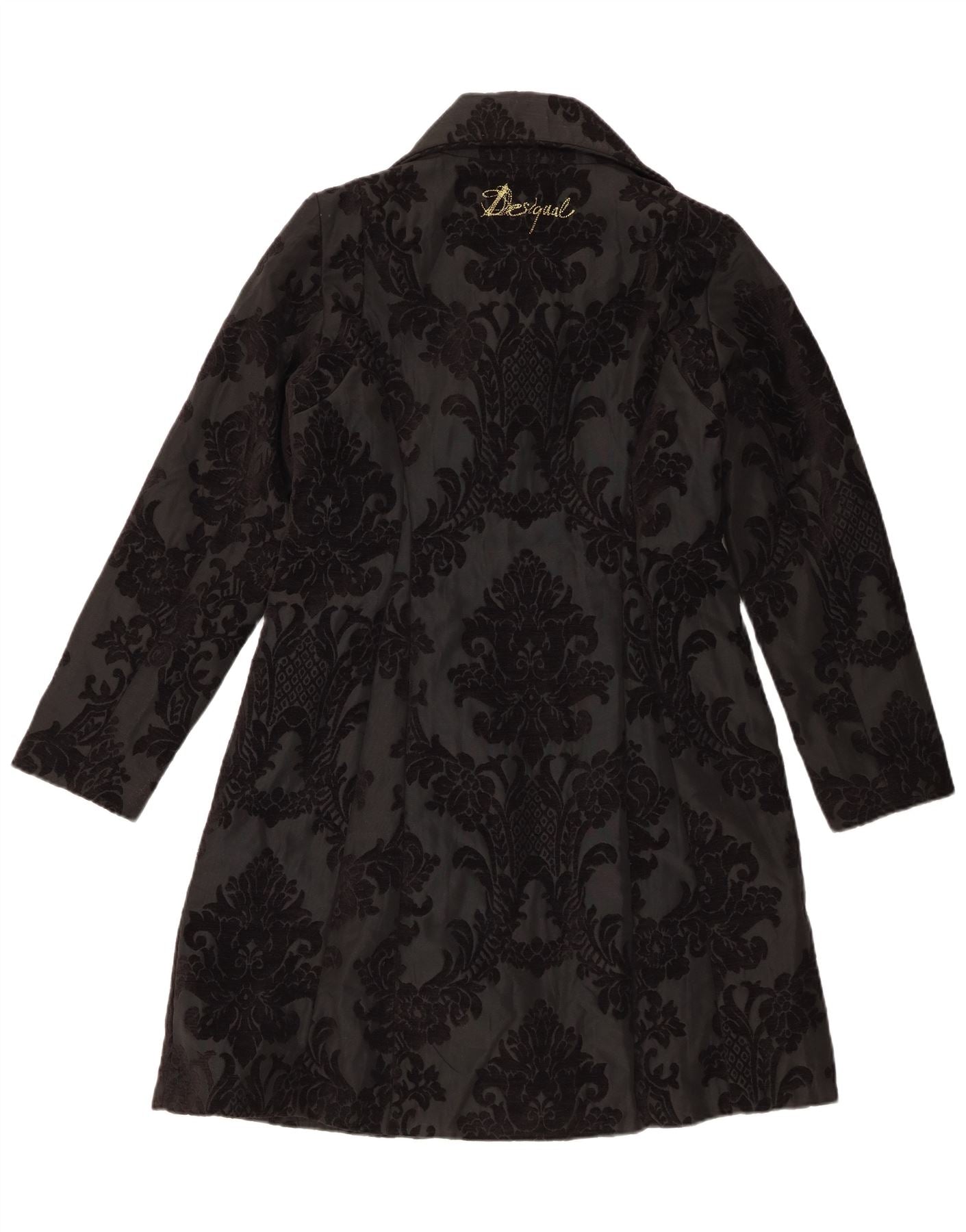 Desigual Damen Mantel EU 42 Großes schwarzes Blumenmuster aus Polyester