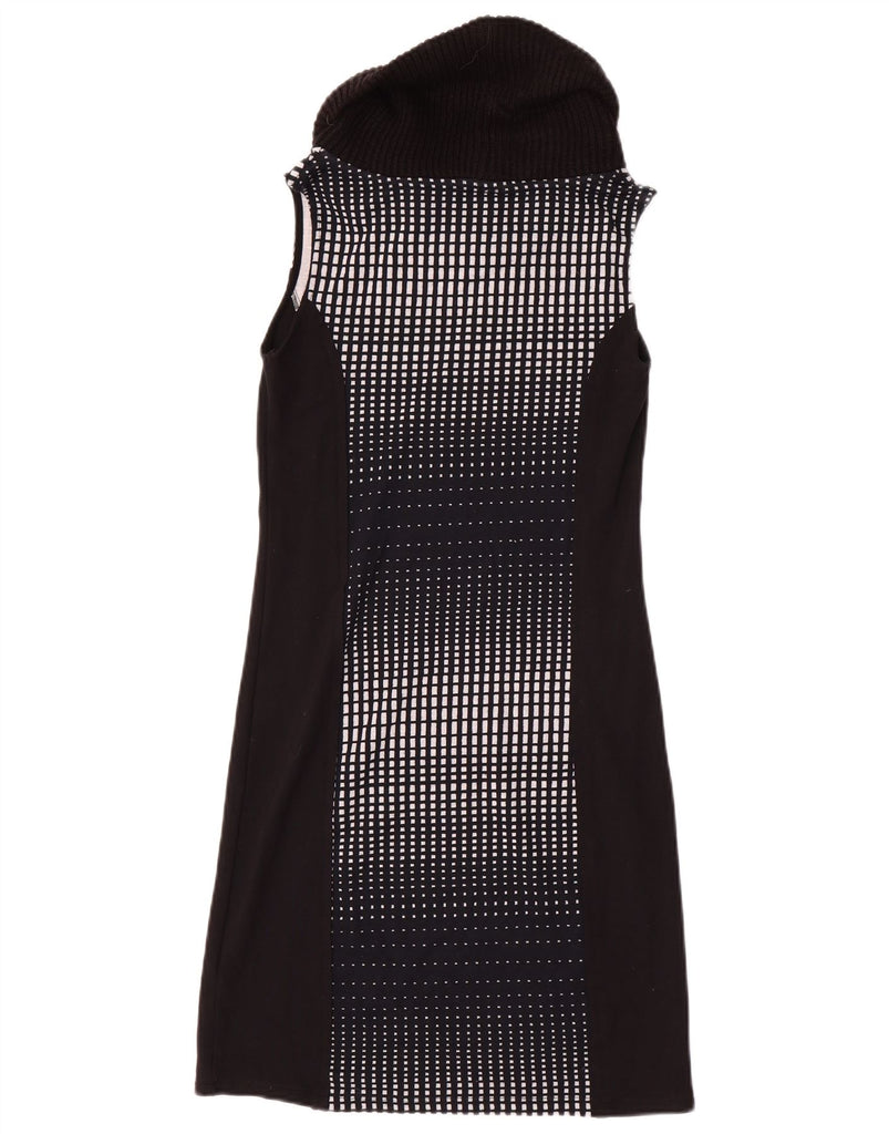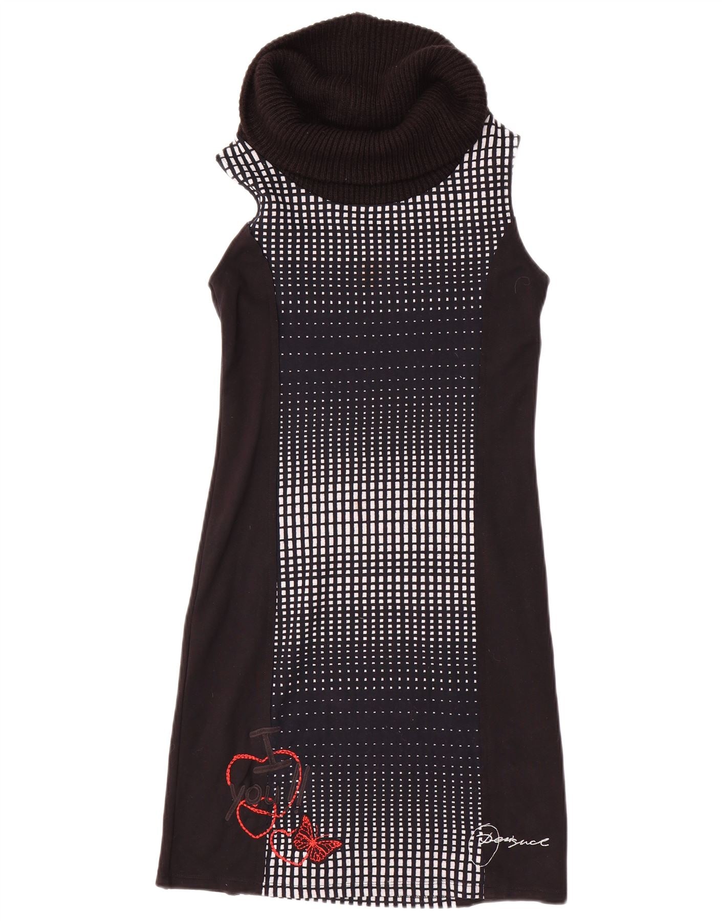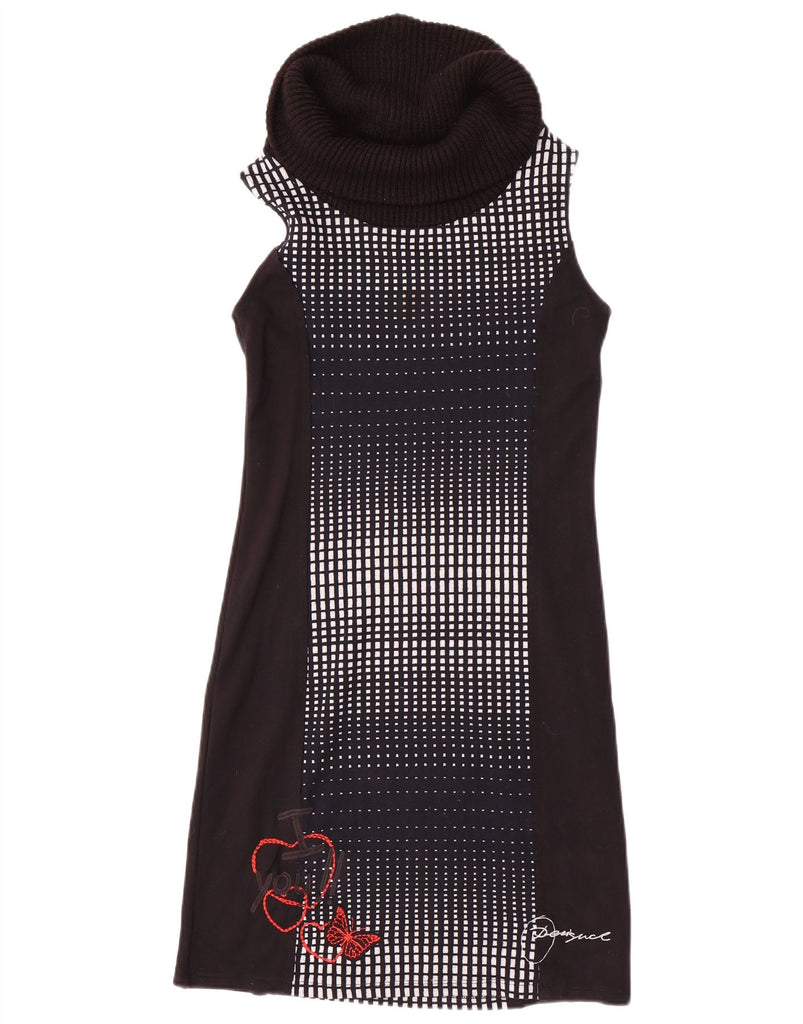 DESIGUAL Womens Roll Neck A-Line Dress UK 6 XS Black Geometric Heart
