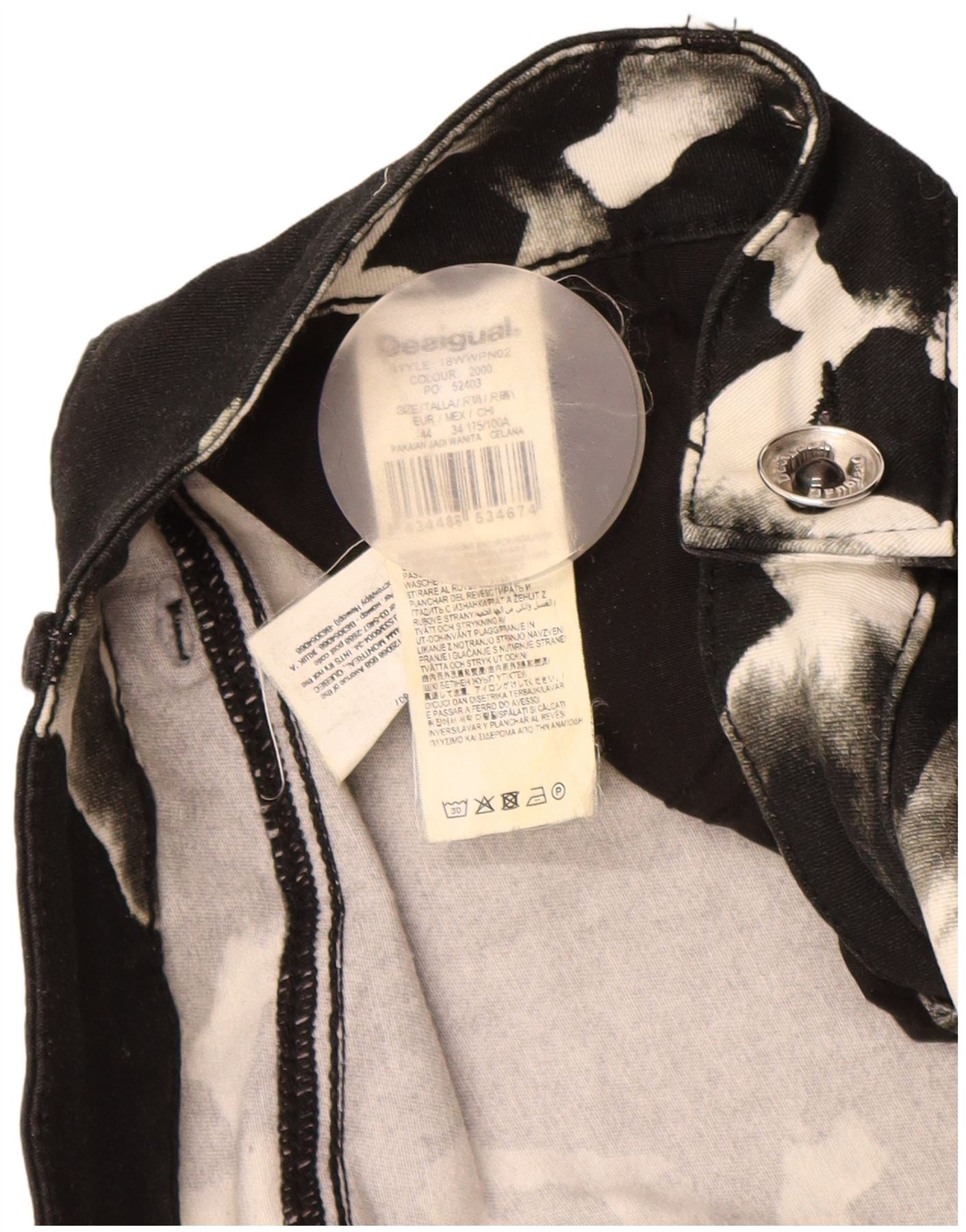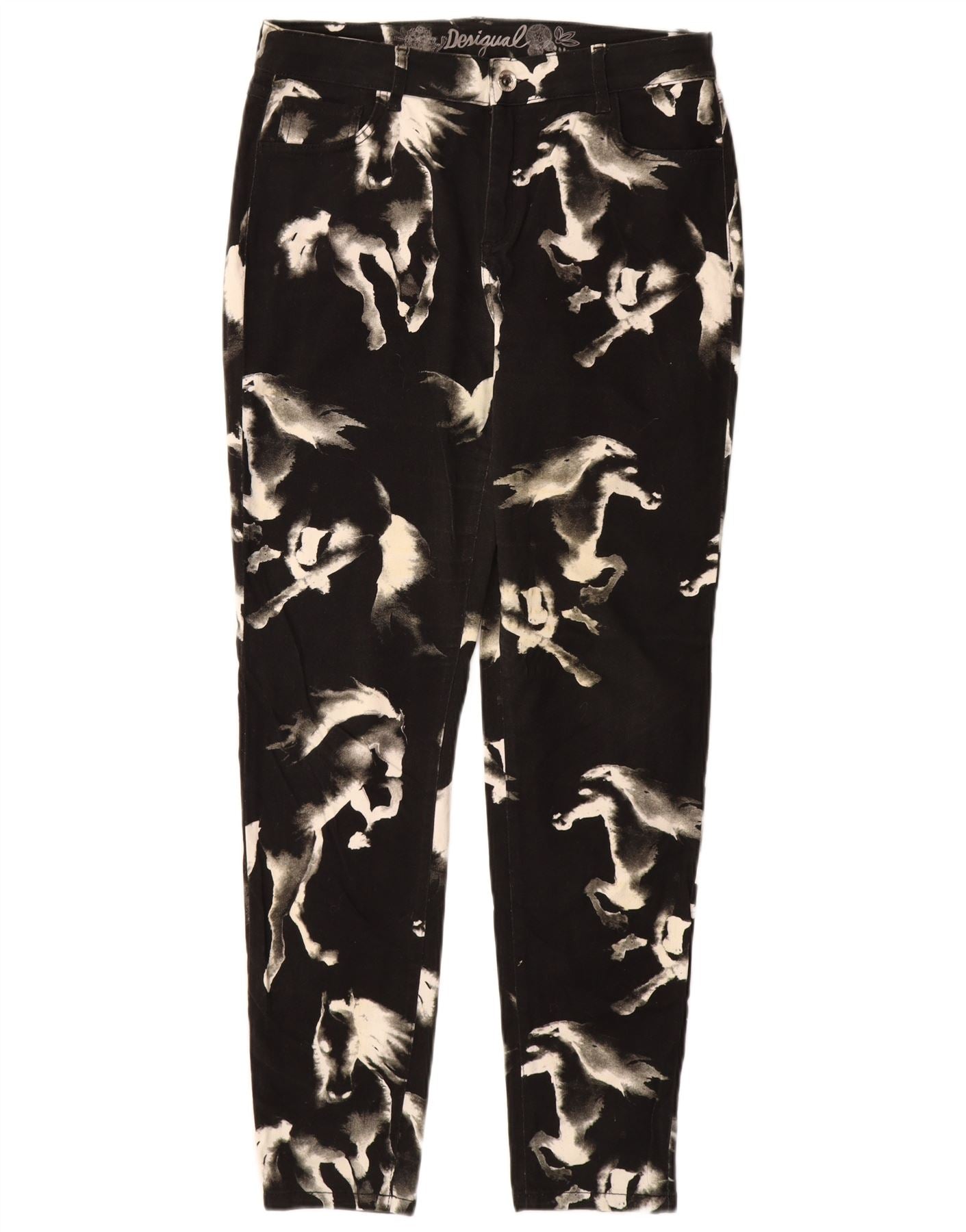 DESIGUAL Damen Skinny Freizeithose EU 44 XL W34 L31 Schwarzer Animal-Print