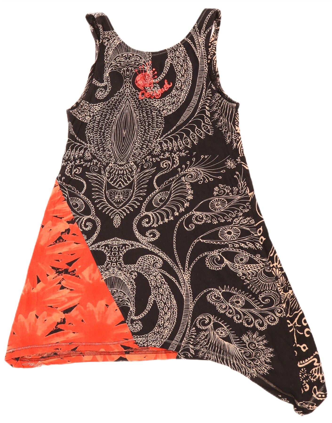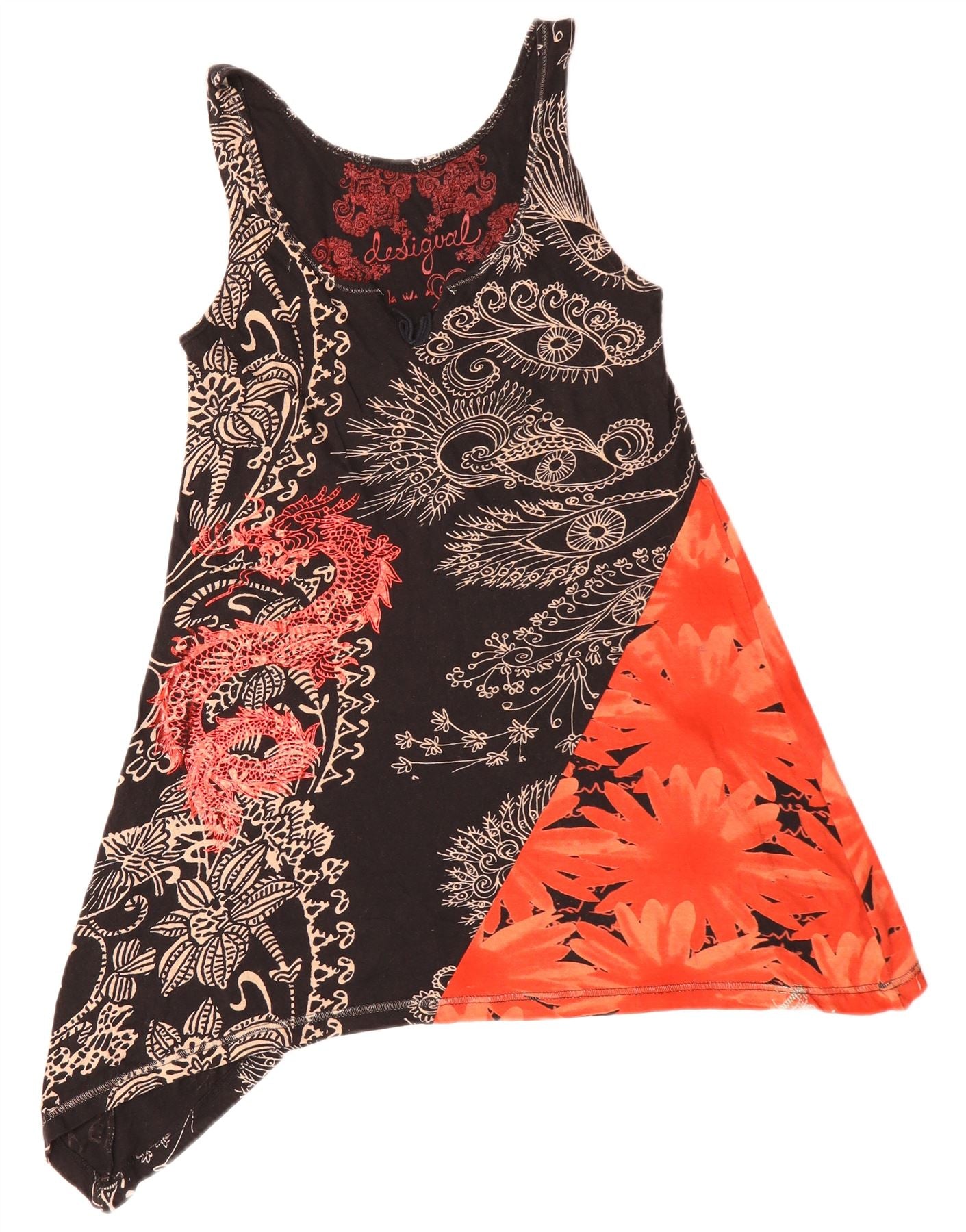 DESIGUAL Damen ärmelloses asymmetrisches Tunika-Oberteil UK 10 Small Black Floral