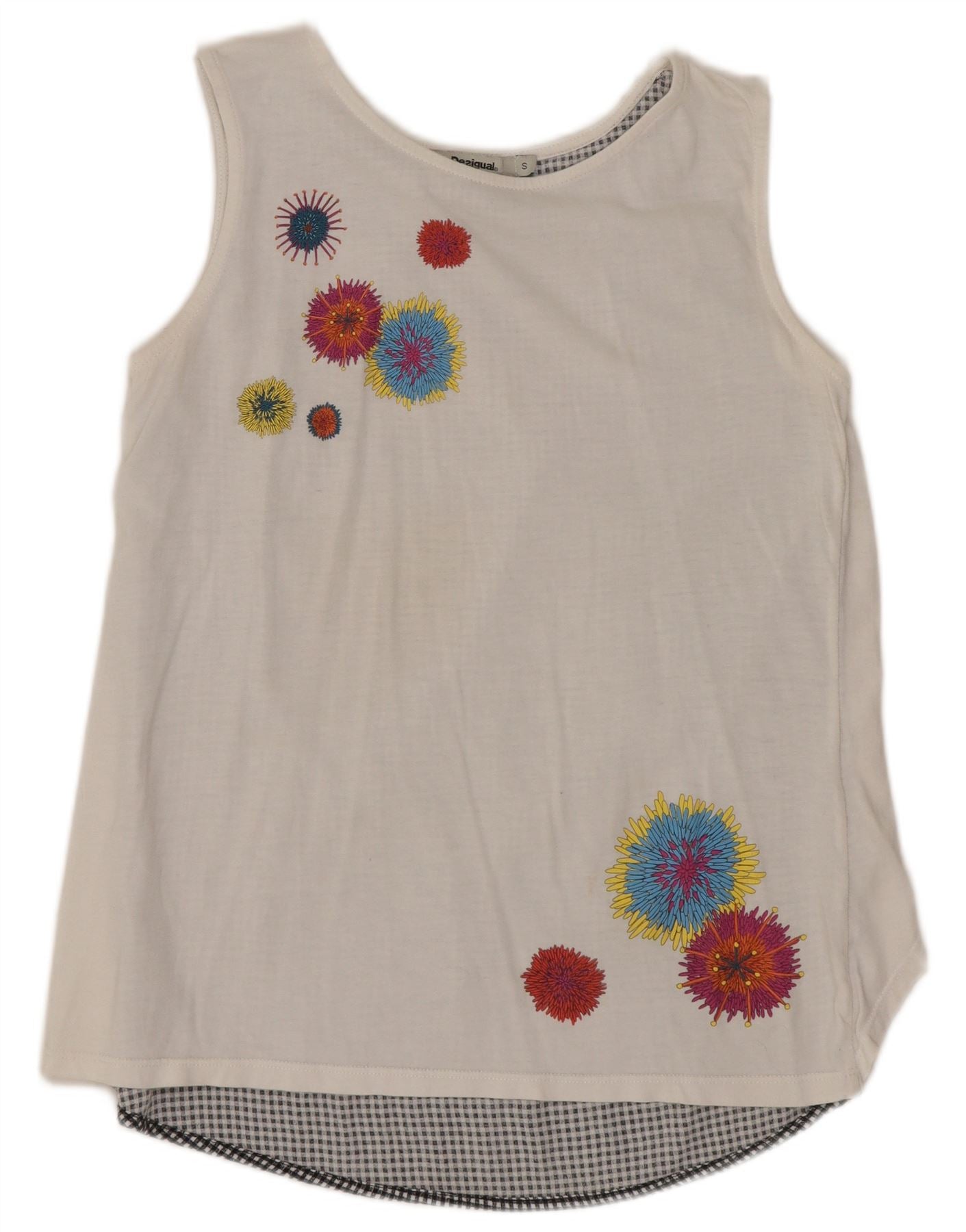 DESIGUAL Damen ärmelloses Blusenoberteil UK 10 Small White Floral