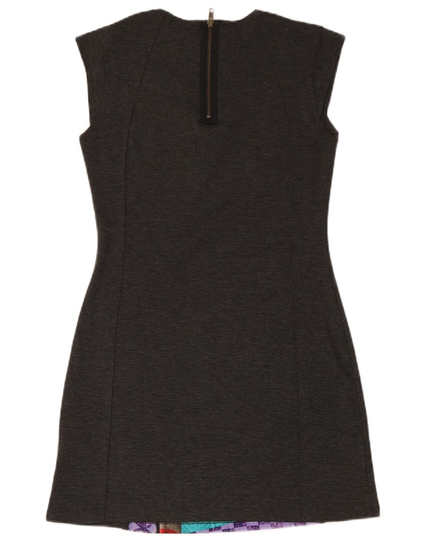 DESIGUAL Damen Ärmelloses Etuikleid UK 14 Mittelgrau Patchwork