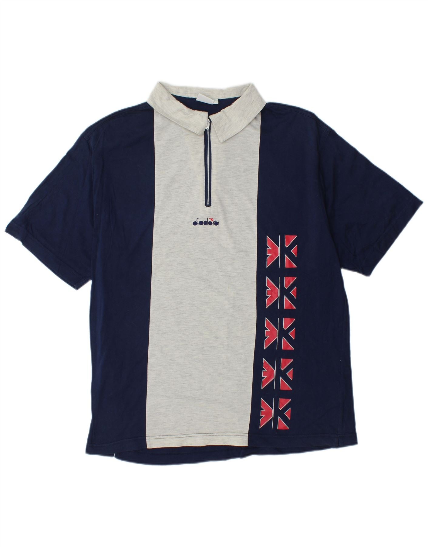 DIADORA Herren-Poloshirt mit Grafik, groß, marineblau, Colourblock-Baumwolle