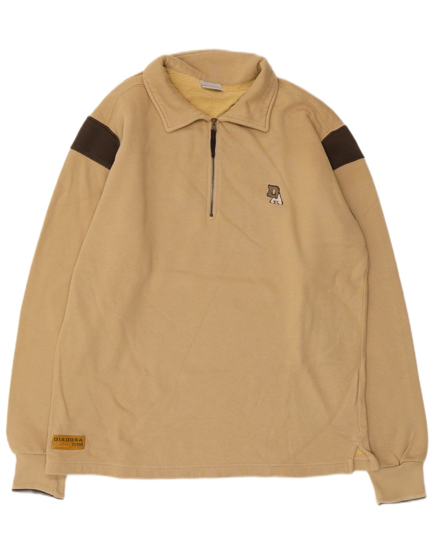 DIADORA Herren-Sweatshirt mit Rollkragen, groß, beige, Colourblock-Baumwolle