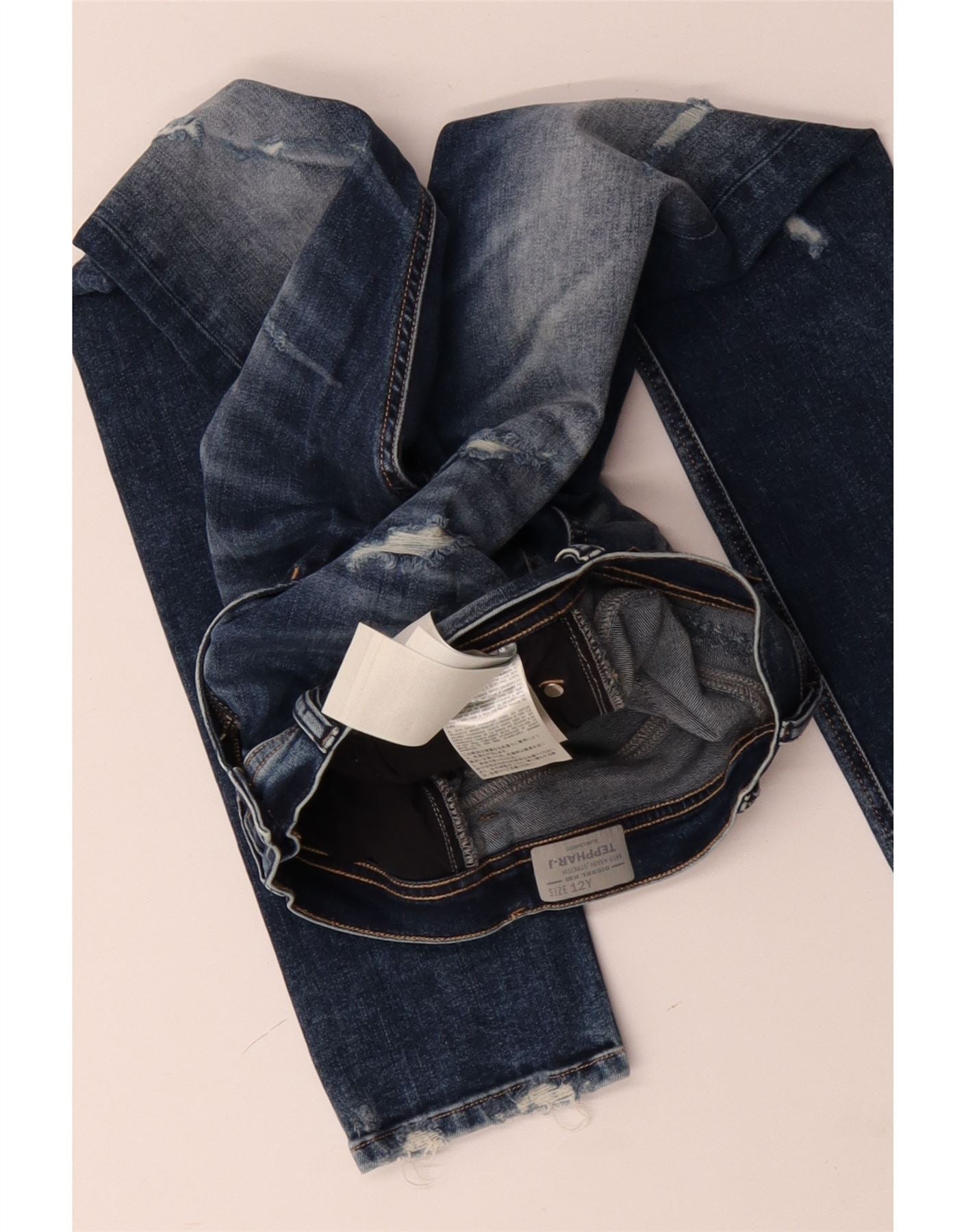DIESEL Boys Tepphar Distressed Slim Jeans 11-12 Years W28 L30 Blue Cotton
